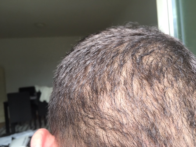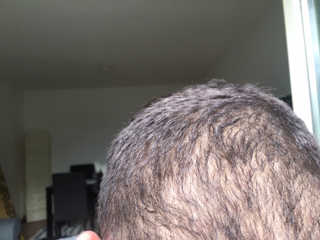 Hab ich dann heute gemacht, ich konnte meinen Augen nicht trauen. Seit einiger Zeit hatte ich das Gefühl dass das Haar am Hinterkopf sehr weich wurde, an den Seiten jedoch nicht, habe mir aber nichst bei gedacht.