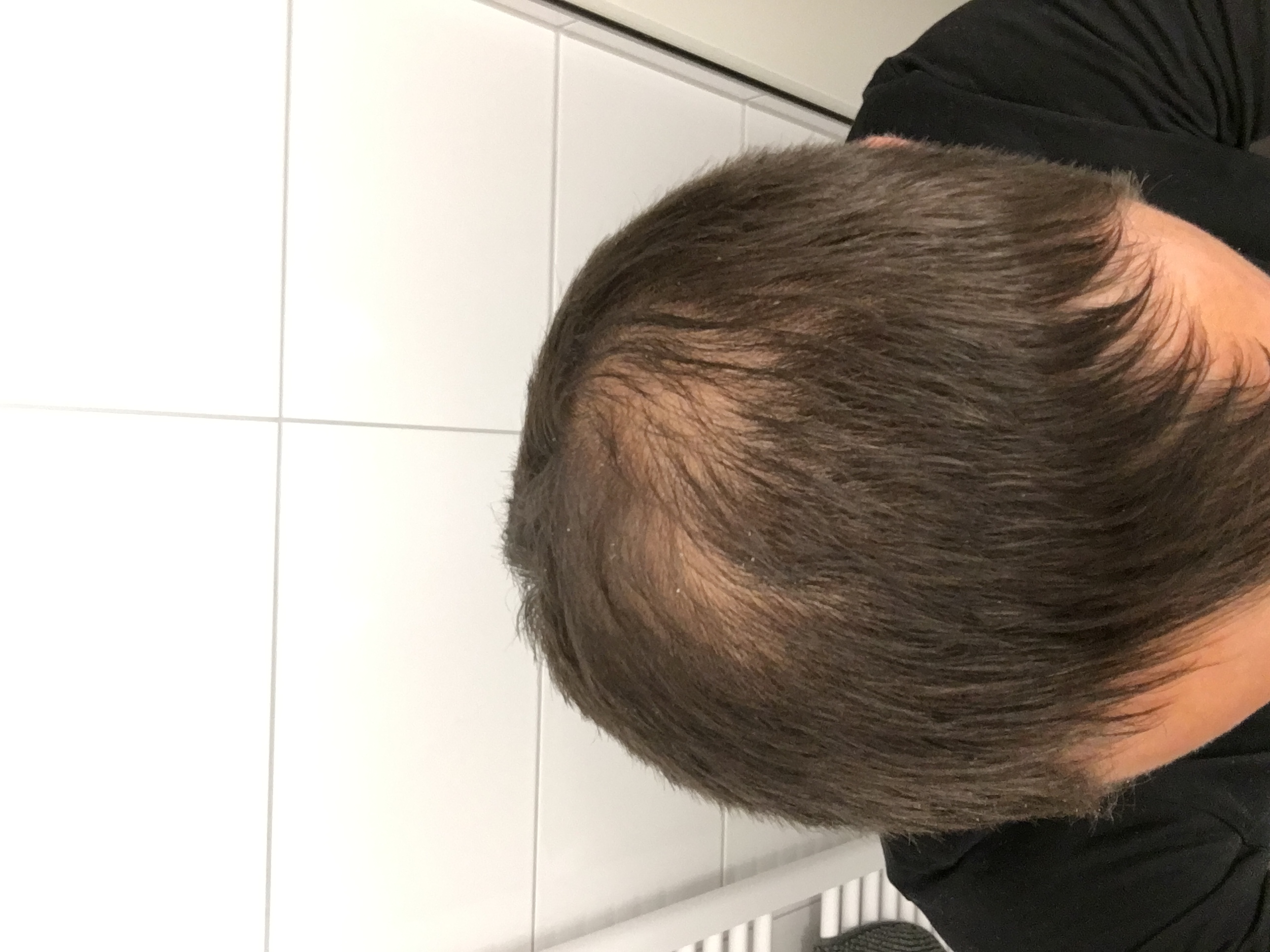 Haarausfall seit ich 19 bin, anfangs nur GHE, danach obere Haare dünner/feiner geworden aber keine kahlen Stellen. in letzten 3-4 Jahren kam Tonsur dazu.