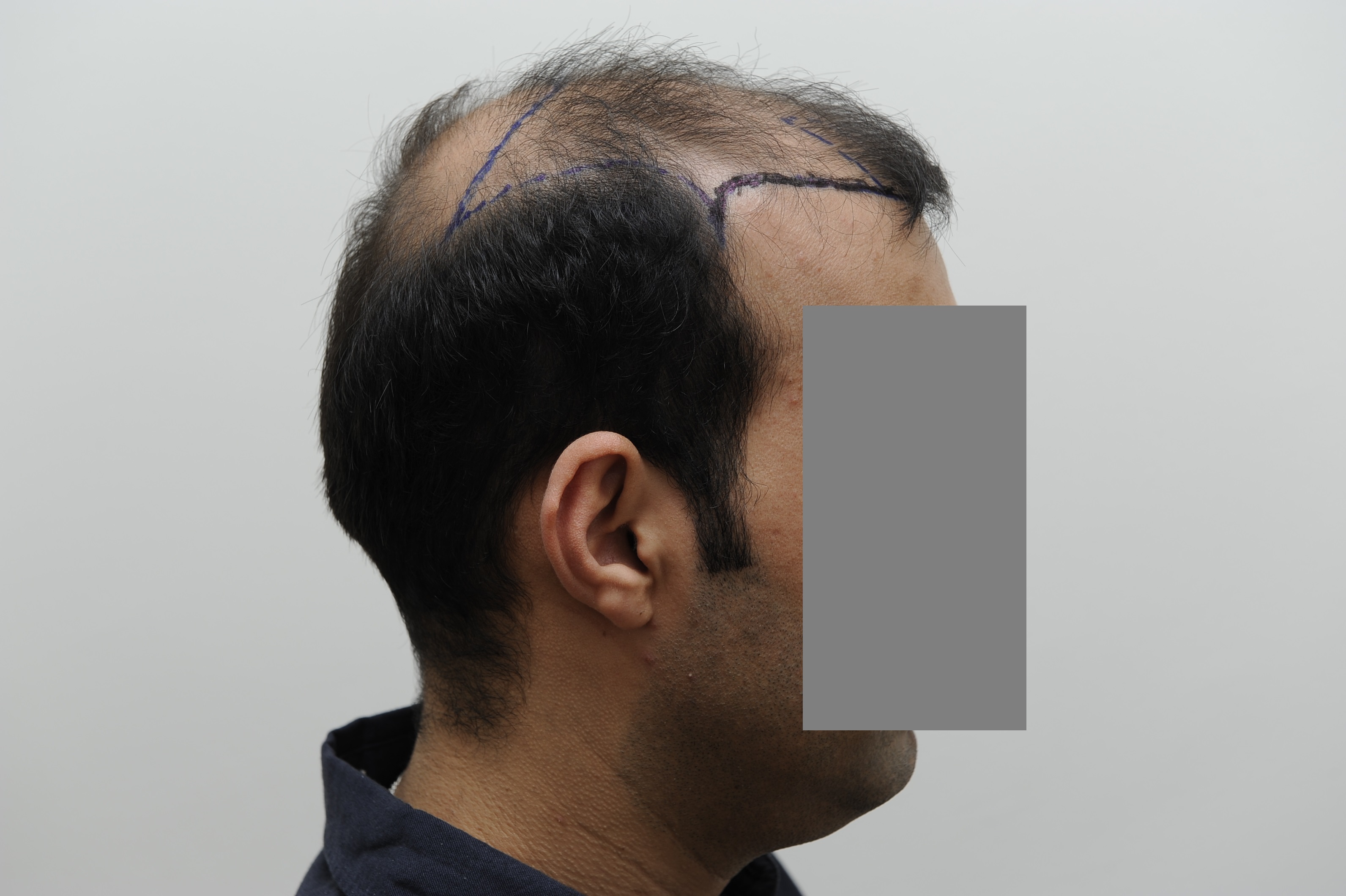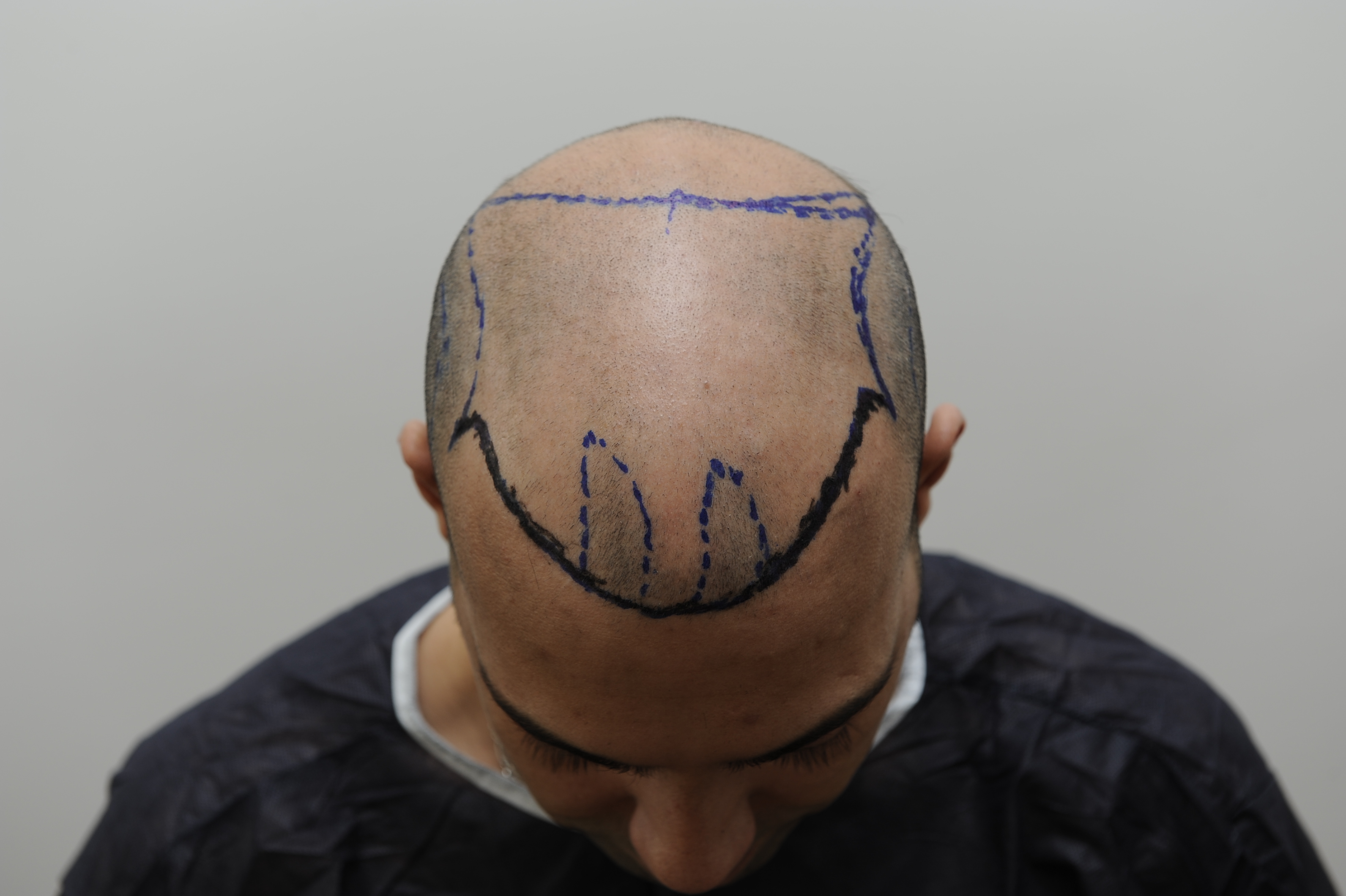 Nach Ankunft in der Klinik begutachtete Dr. Demirsoy meinen Haarstatus und stellte mir Fragen zu meinem Haarausfall. Da die kahle Fläche sehr groß war, entschieden wir uns für uns für eine konservative Haarlinie und die Transplantation des vorderen und mittleren Kopfes. Die Tonsur wurde ausgelassen und kann bei einer zweiten OP behandelt werden.