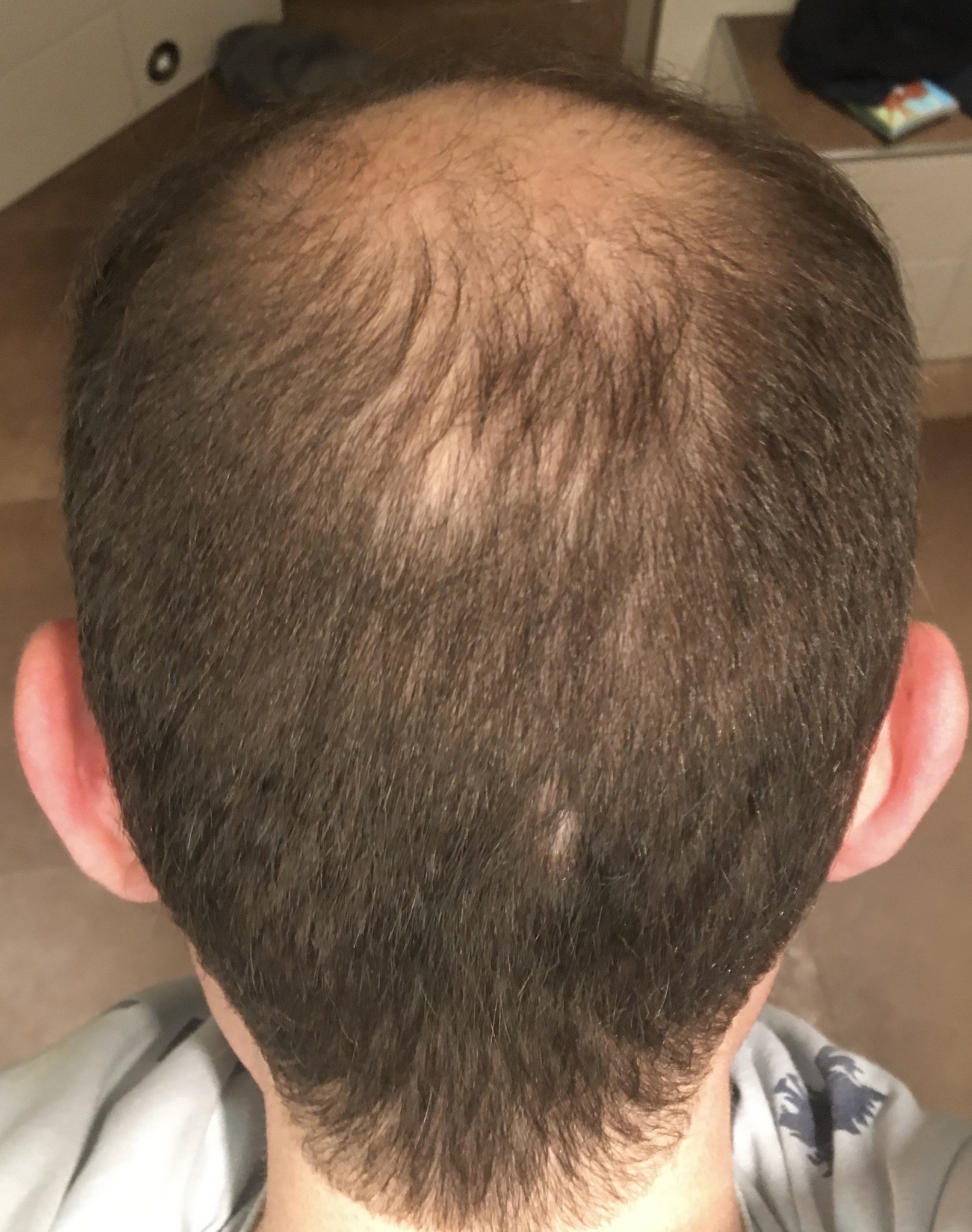 * Medikation (Therapieversuche/Erfolge/aktuelle Medikation): über 7 Jahre Minoxidil. Hat Haarausfall teilweise gestoppt.