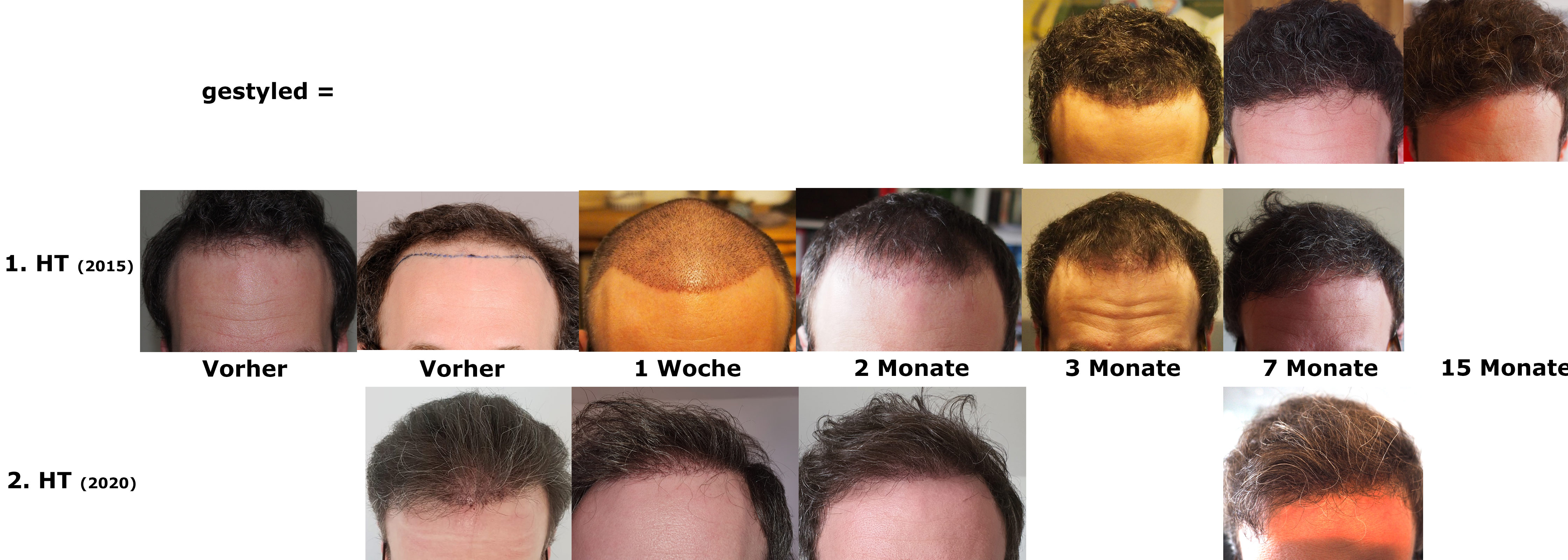 Kurze Zusammenfassung: Damals vor 5 Jahren wurden 3650 Grafts verpflanzt und standardmäßig mein Kopf vorher rasiert. Ich war mit dem Ablauf und dem Ergebnis sehr zufrieden und hatte vorher lange recherchiert. Danach war ich jedoch für ein paar Monate "außer Gefecht" aufgrund der Rasur, was damals noch nicht so schlimm war, da es beruflich möglich war, nicht in Erscheinung zu treten.