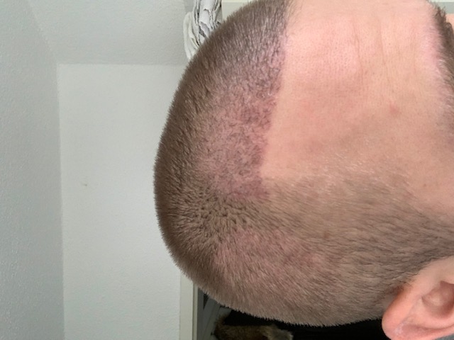 Bisher ist alles gut verheilt und es sind noch kaum Haare ausgefallen. Mal schauen was sich die nächsten Wochen noch verändert.