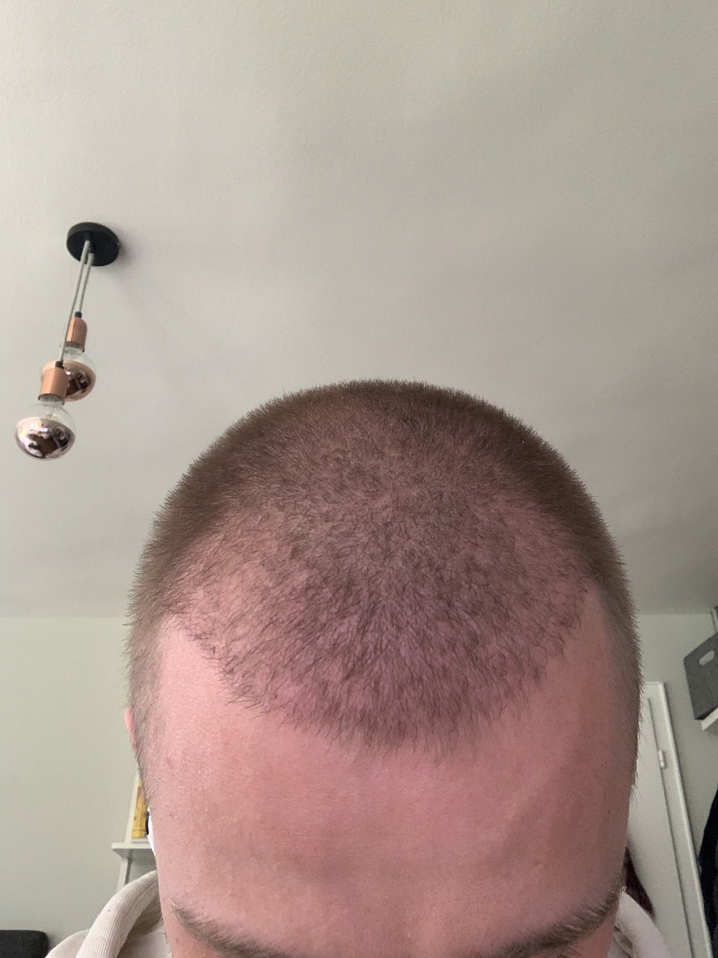 Hier ein Update nach fast 4 Monaten. Ich glaube die Bilder sprechen für ein bisher starkes Ergebnis. Ich habe nach der HT kaum Haare verloren und keine Probleme mit Juckreiz.