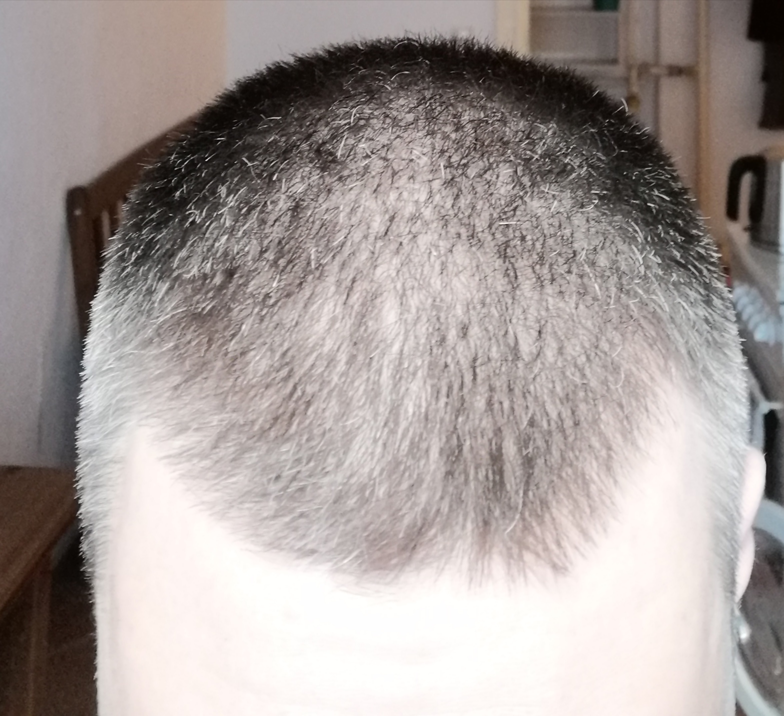 Ich bin 37 Jahre alt und seit gut 8 Jahren sehr unzufrieden mit meiner Haardichte. Meine Haarline hingegen stört mich ansich überhaupt nicht, sie ist nach Jahren nahezu unverändert. Den Ausfall ansich würde ich als gestoppt betrachten. Ich nehme seit gut 7 Jahren Fin und Minox.