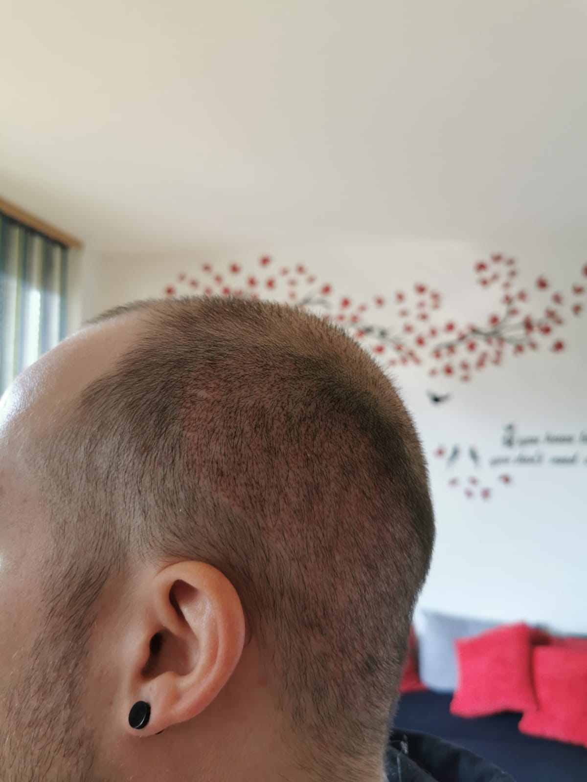 Ich weiß mein Spender Bereich schaut nicht so super aus aber das liegt daran das meine Haare noch nicht so gut gewachsen sind aber hoff mit der PRP Behandlung wird es dann besser werden und pflege meinen Spender bereich auch sehr viel ☺️👍🏻