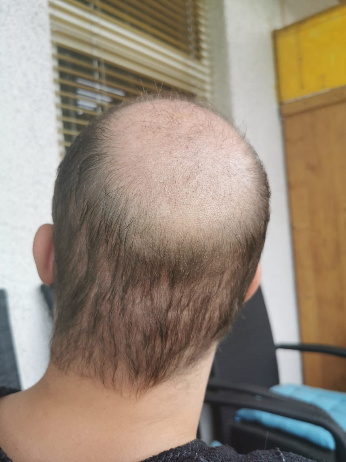 Ich muss allerdings sagen: Aus meiner Sicht hättest du lieber keine HT machen sollen (und schon gar nicht Zwei). Du scheinst ja auch noch relativ jung zu sein und dein Donor selbst wirkt sehr dünn (auch an den Seiten). Eventuell wäre es gut gewesen, in einer zweiten Runde nur die FUT Narbe zu bepflanzen, um auch in Zukunft kurze Haare zu ermöglichen.