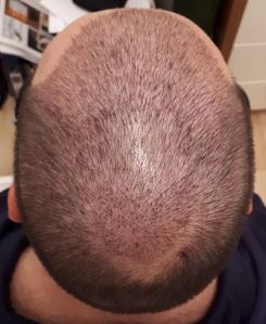 die Dichte der verpflanzten Haare scheint auf einem hohen Niveau zu sein. Zu diesem Zeitpunkt nach ca. 2 Monaten bin ich sehr zufrieden jeden Tag spriessen neue Haare.