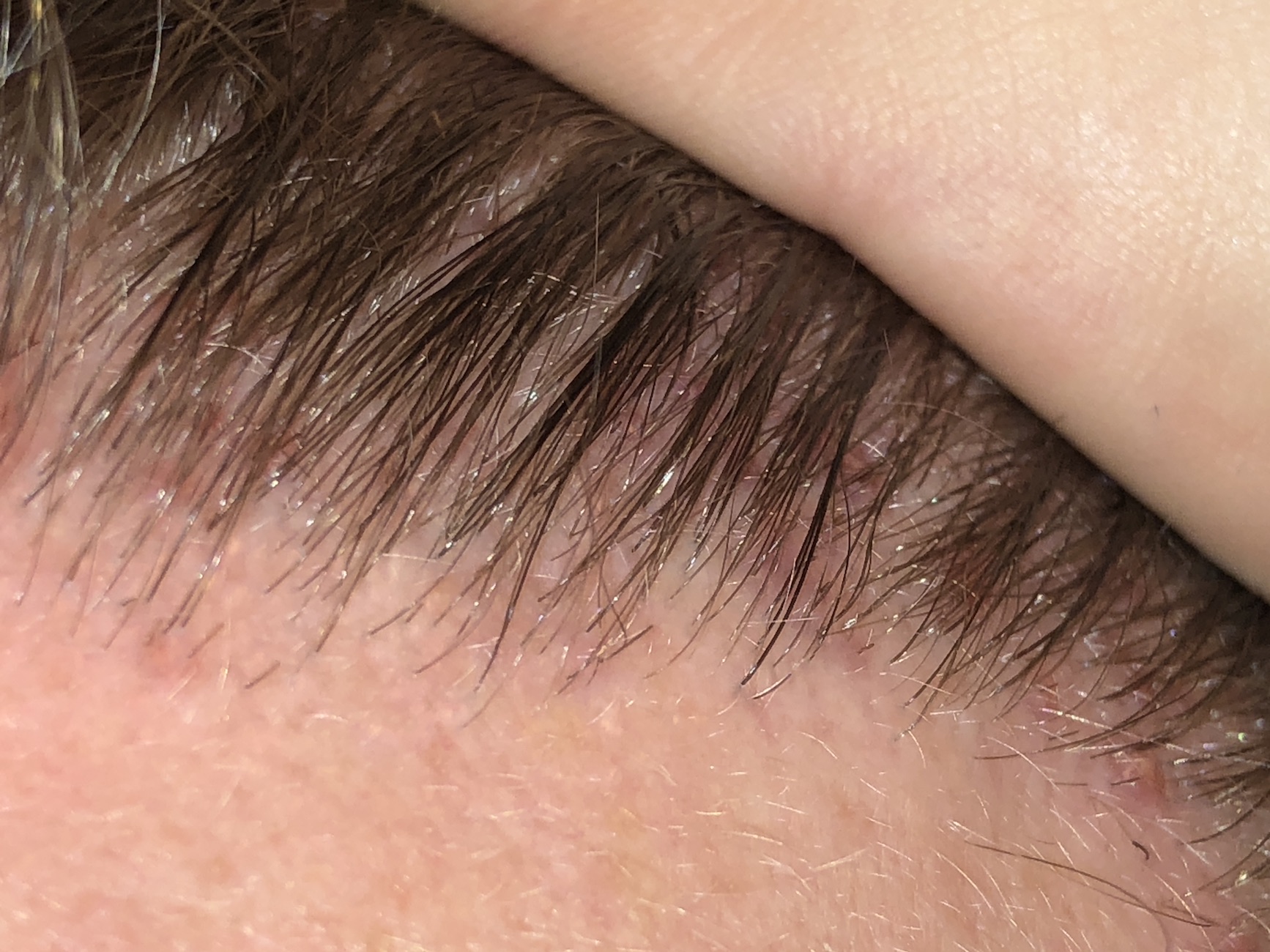 Dr. Feriduni sagt, es sei eine kleine oberfläche Entzündung, die man mit Ket behandeln kann. Etwas anderes sei nicht notwendig und ein Zeichen des Wachstums und meiner empfindlichen Haut.