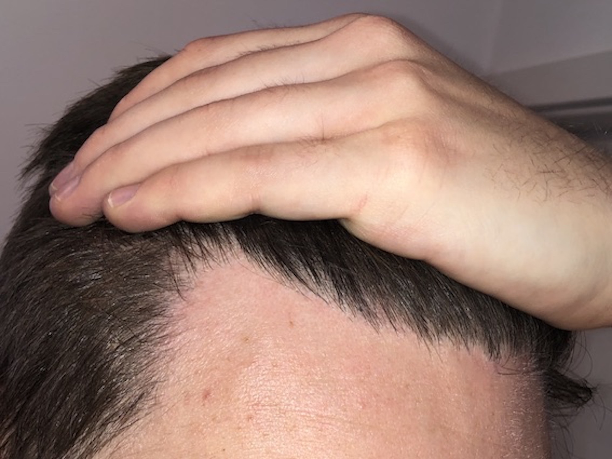 Kopfhautpickel, in Folge das hier und da noch kleine Haare durchkommen sind auch noch vorhanden.