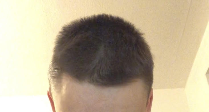Leider ist jedoch die linke Seite meiner Haarlinie um ca 0,5cm weiter nach hinten versetzt. Es ist eine reine Symmetriesache die mich aber leider oft im Spiegel quält.