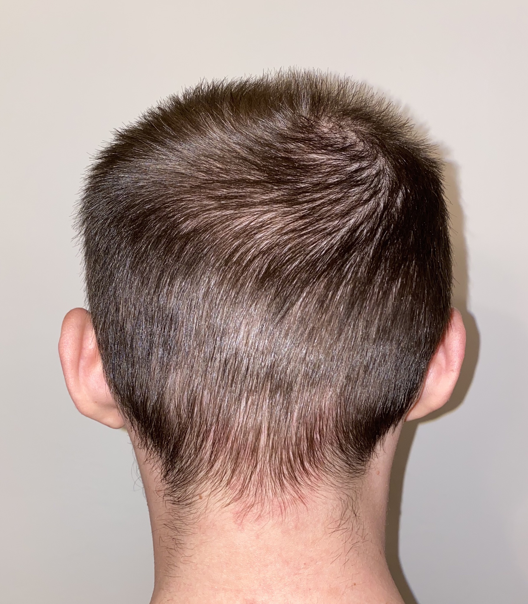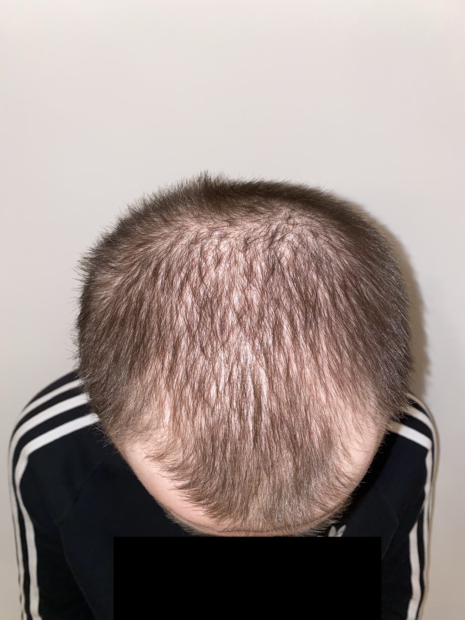 Mittlerweile habe ich keinen Haarausfall mehr, mir fallen vielleicht 10 Haare am Tag aus, aber meine Geheimratsecken sind weit zurückgegangen und ich kann keine normale Frisur tragen. Ich hatte nie dichte Haare, aber wenn sie mal 2-3 cm lang gewachsen sind, hat das optisch sehr voll ausgesehen.