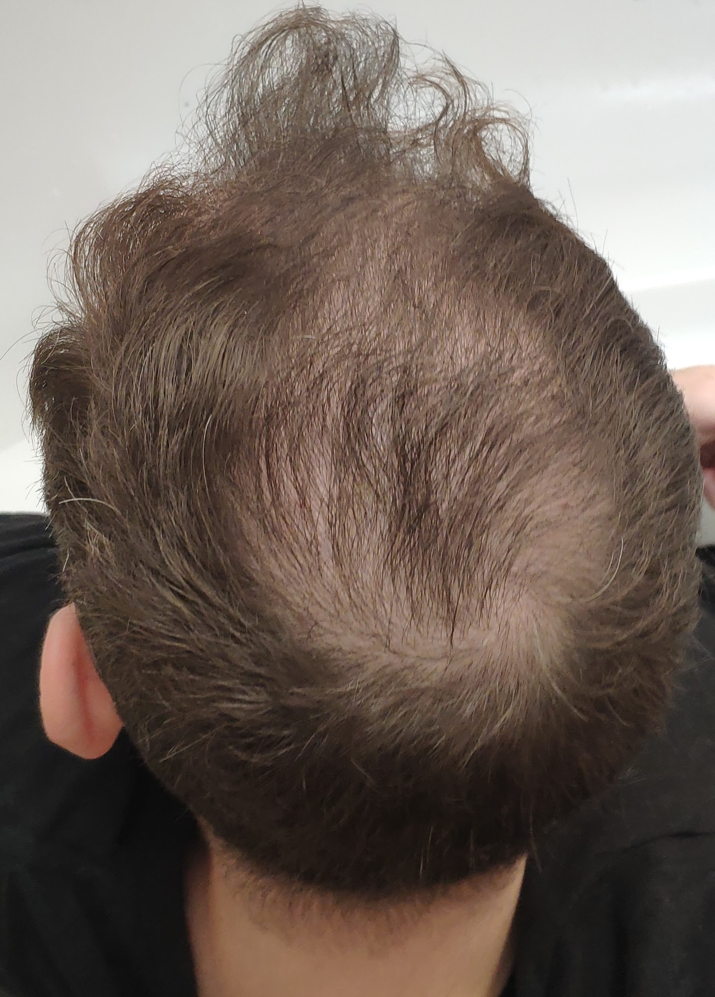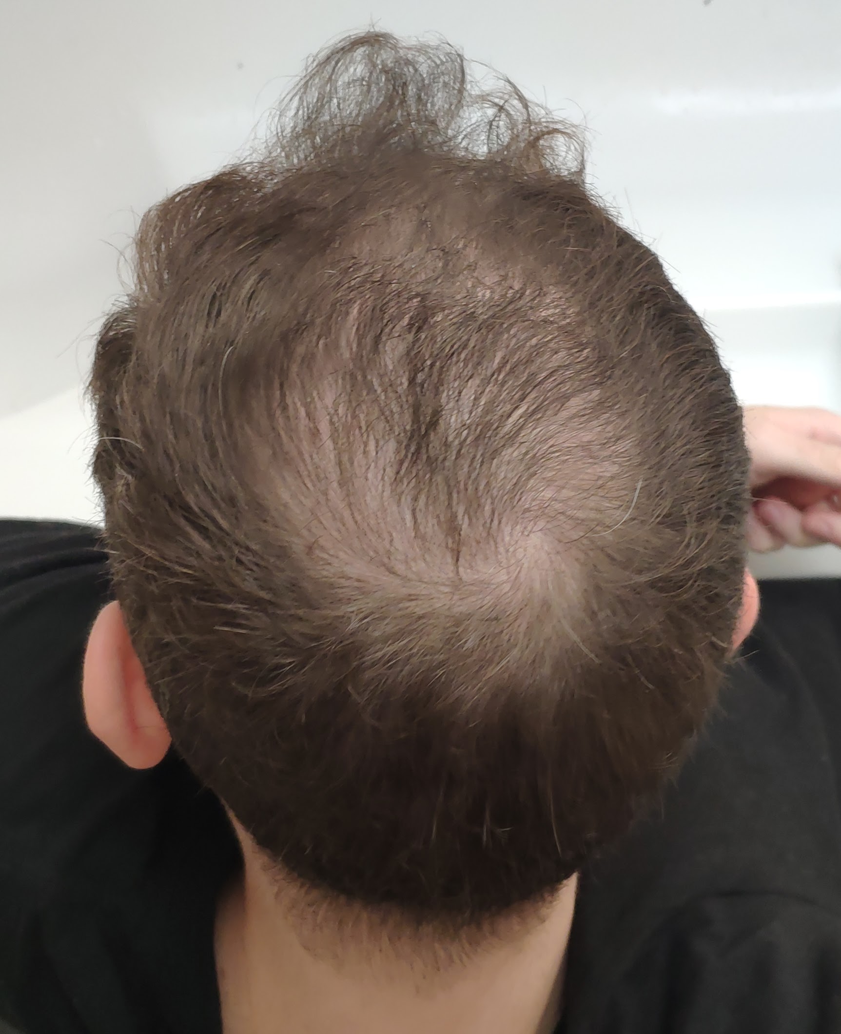 Wenn du mittelfristig dran bleibst, könnte Minox Foam 1x täglich eine Überlegung wert sein. Außerdem wirken deine Haare auf den Bildern oft etwas ölig/fettig. Evtl. Sebo-AGA. Könntest optisch durch Ketozolin 2% 1-2 mal wöchentlich (gut einwirken lassen) vielleicht auch noch etwas rausholen.