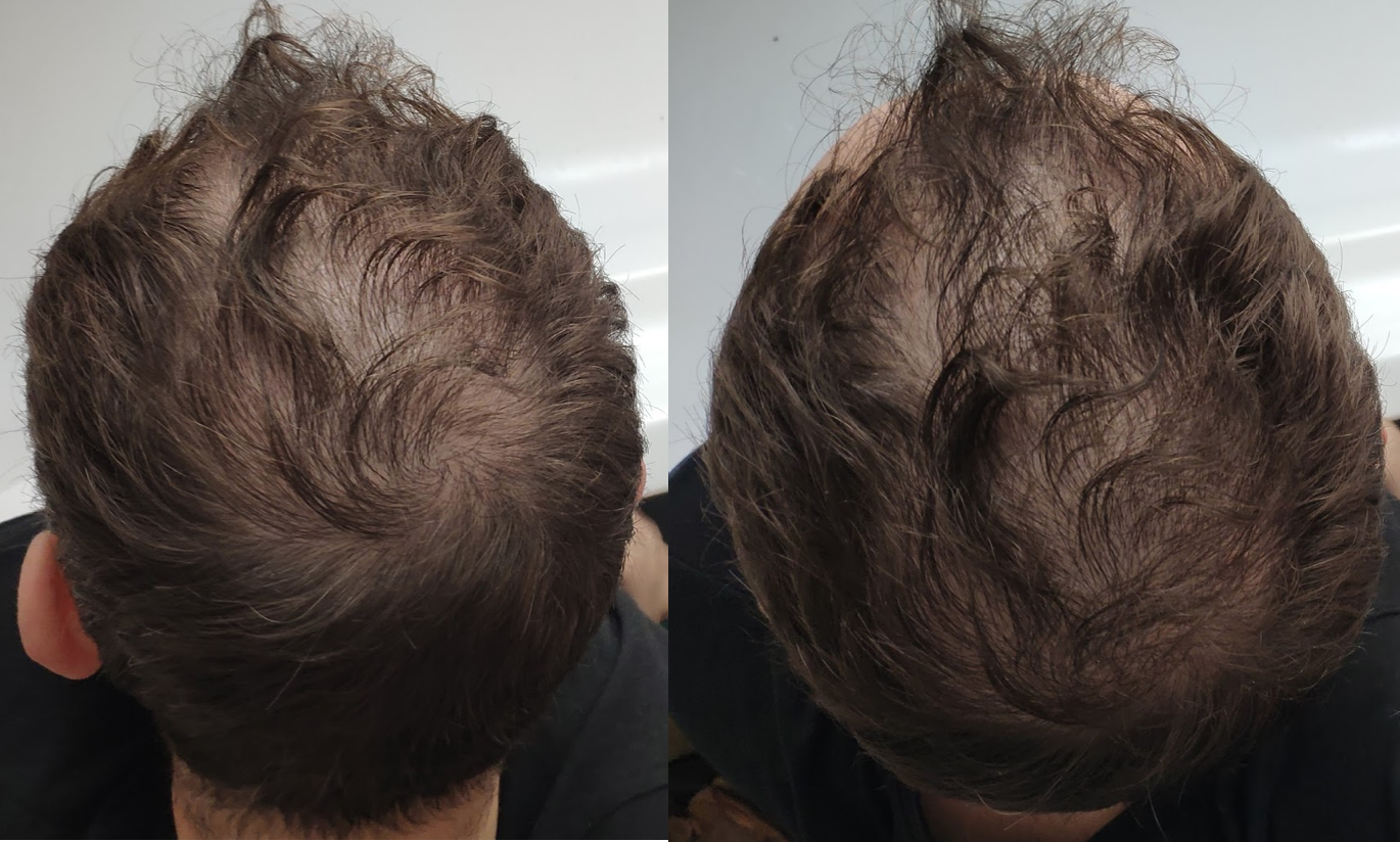 Hey, hier das Update... insgesamt definitiv eine Verbesserung, bin aber nach wie vor etwas enttäuscht über die Dichte insgesamt und insbesondere im linken Bereich. Das sieht, wenn die Haare den ganzen Tag über etwas fettiger werden dann wieder recht lückenhaft aus... Bin jetzt quasi in Monat 10 und denke mal, dass es da keine großen Sprünge mehr geben wird? Insgesamt sind die neuen Haare recht schwer zu zähmen und locken sich deutlich mehr, aber das ist einigermaßen verschmerzbar....