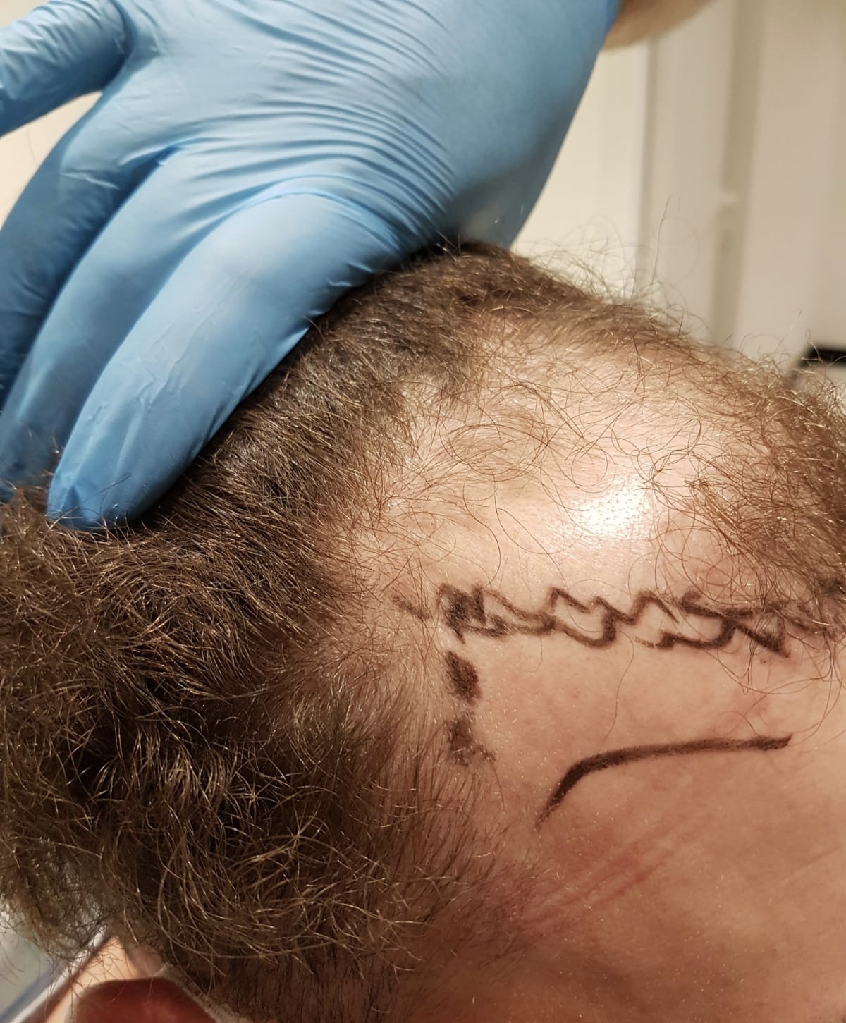 Nachdem besprochen wurde, wie die Operation abläuft und ich mir meine neue Haarline vorstelle, ging es zum Haare schneiden und danach in den OP Raum.