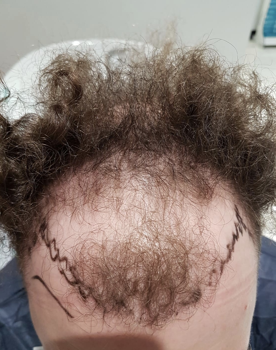 Am ersten Operationstag wurden mir 2700 Grafts im vorderen Bereich transplantiert. Die Operation ging ungefähr 9 Stunden.