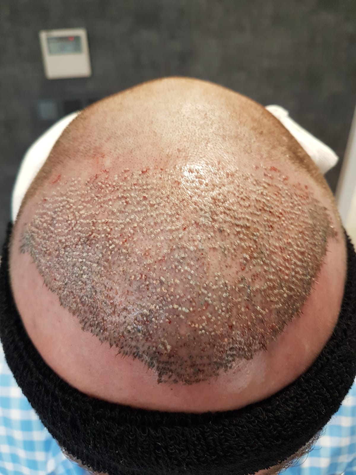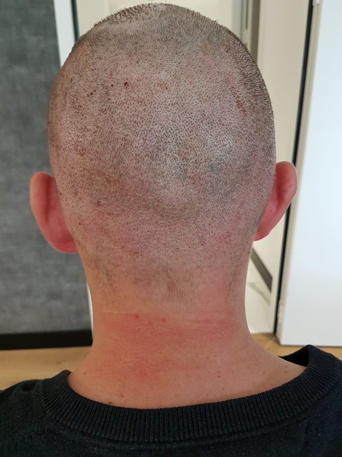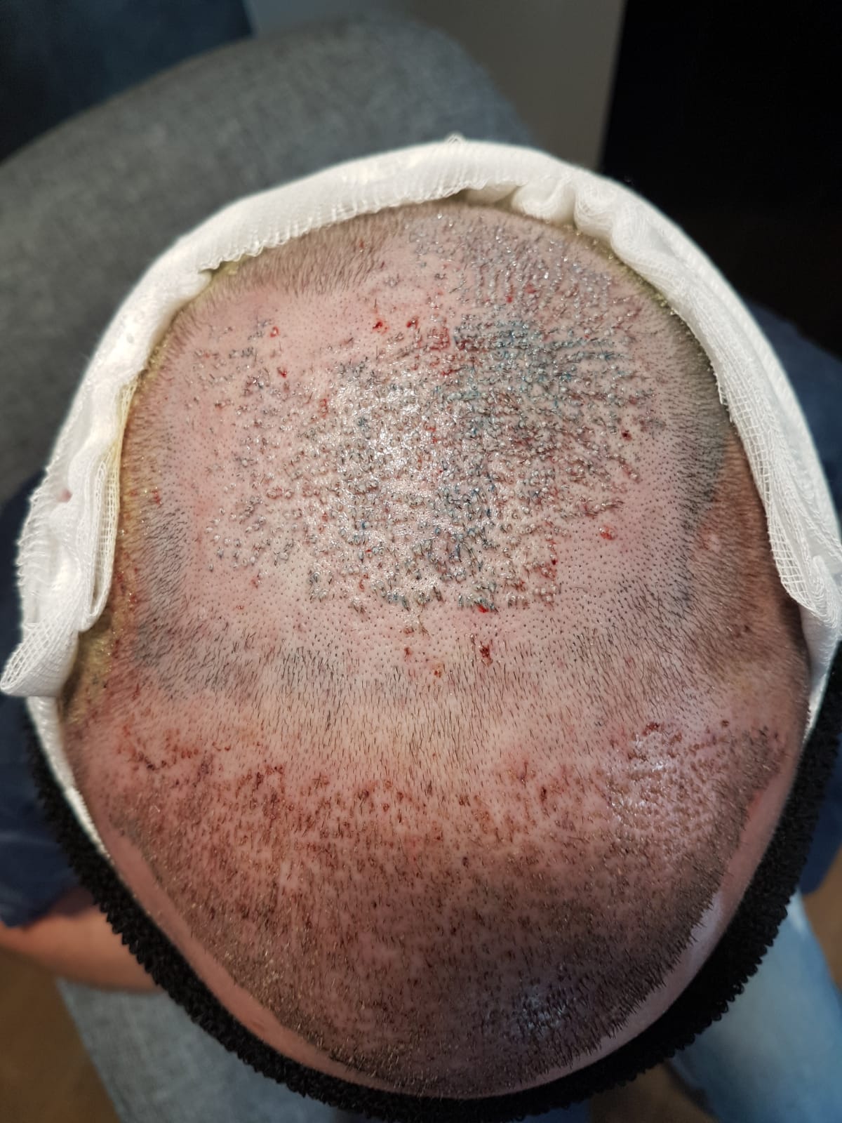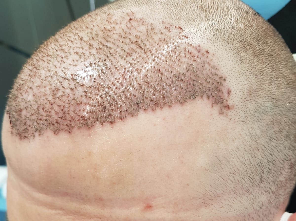 Die Tonsur wurde „nur“ mit 1370 Grafts bearbeitet.
