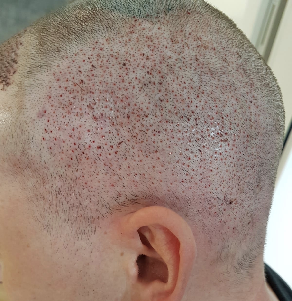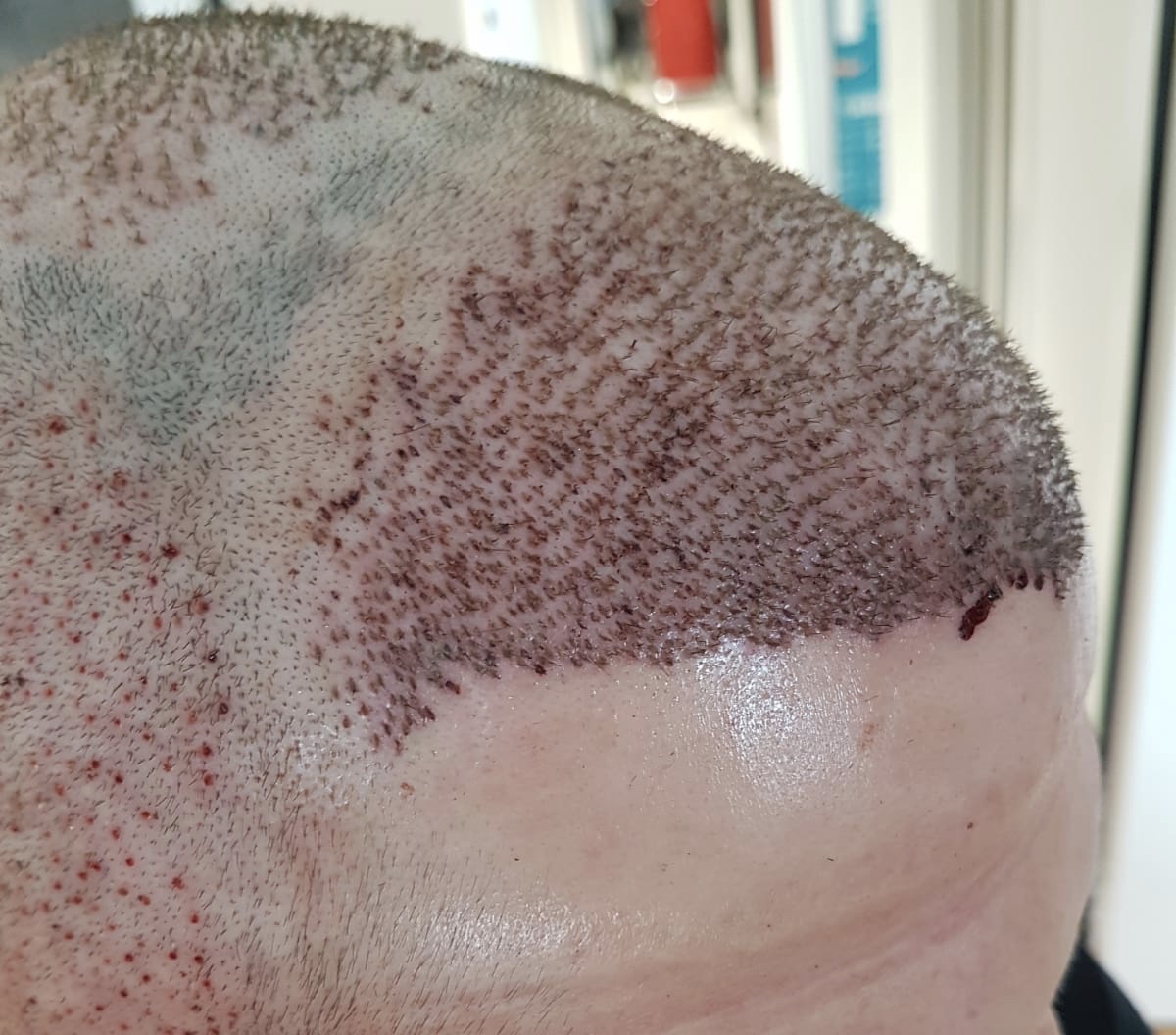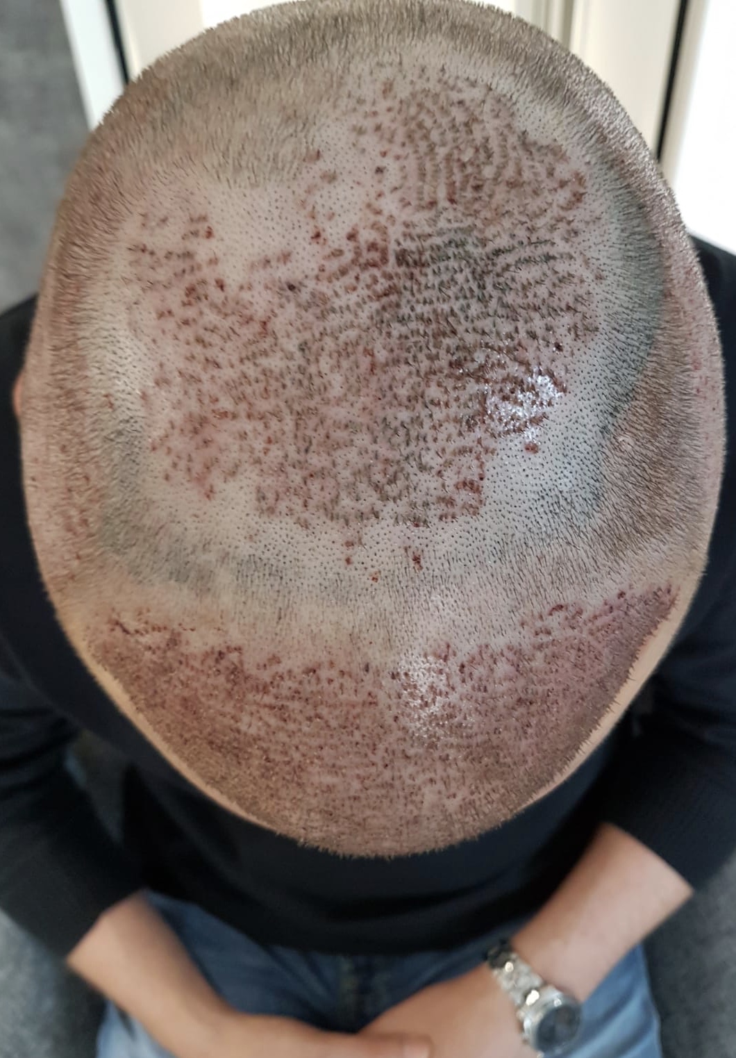 Die Tonsur wurde „nur“ mit 1370 Grafts bearbeitet.