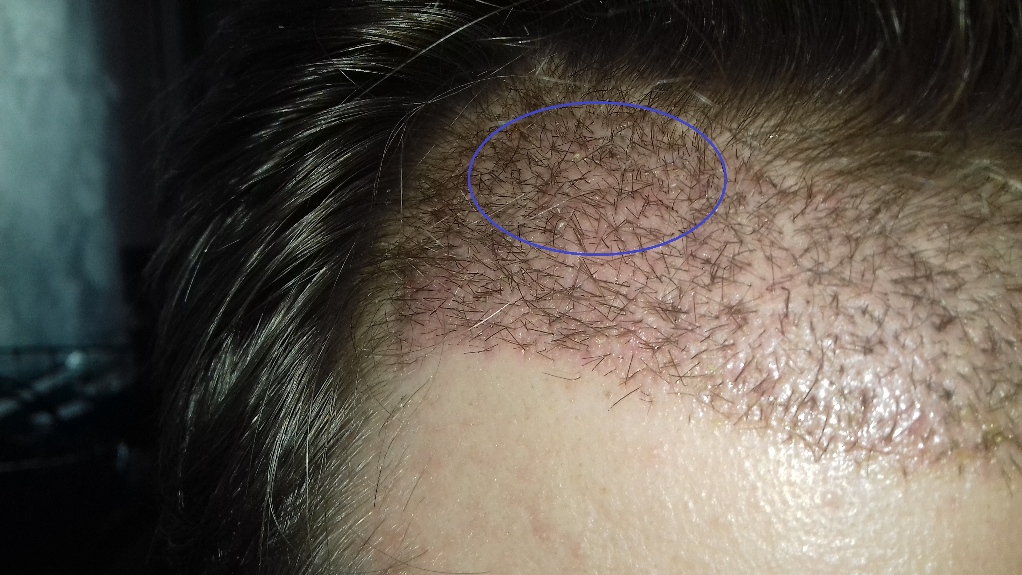 Ich hatte vor 17 Tagen eine HT und seit gestern bemerke ich kleine Schuppen an der Front, wo die transplantierten Haare eingepflanzt wurden. Ich habe versucht, ein Foto zu machen. Leider ist meine Kamera nicht besonders gut, in echt sieht man die Schuppen deutlich und es sind auch mehr.