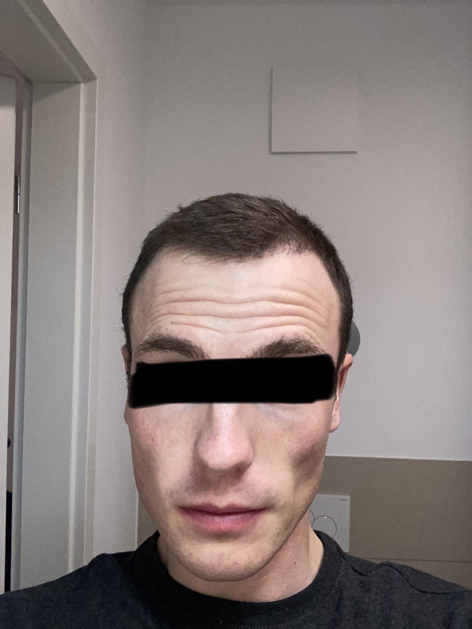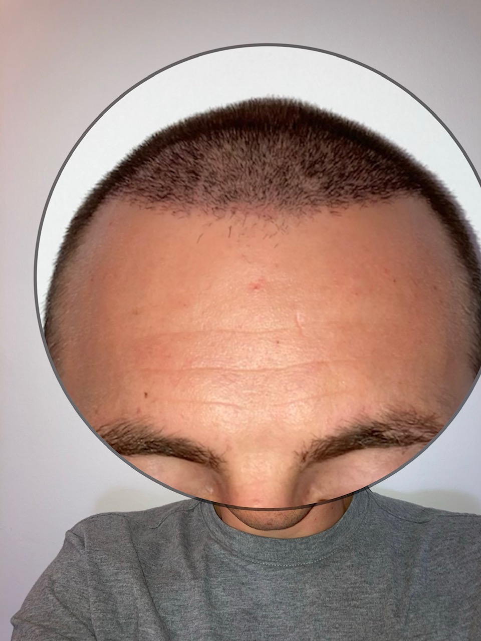 Bestandshaar mittig im Empfängerbereich wächst schon ein bisschen nach, vielleicht lässt sich meine Stirn in den nächsten Wochen und Monaten doch durch einen majestätischen Puschel etwas bedecken. Man wird sehen.