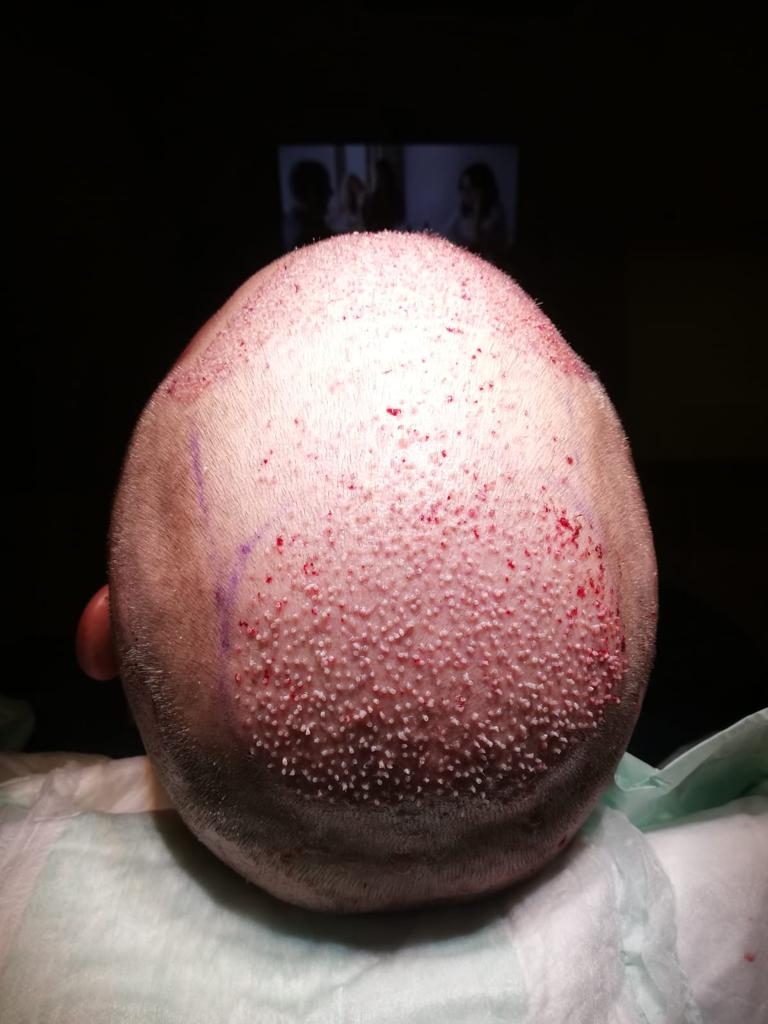 Aufgrund der Fotos wurden 3500-4000 Grafts empfohlen, beim persönlichen Gespräch hat man mir aber zu 3200 geraten da der Spenderbruch nicht so dicht war wie erwartet.