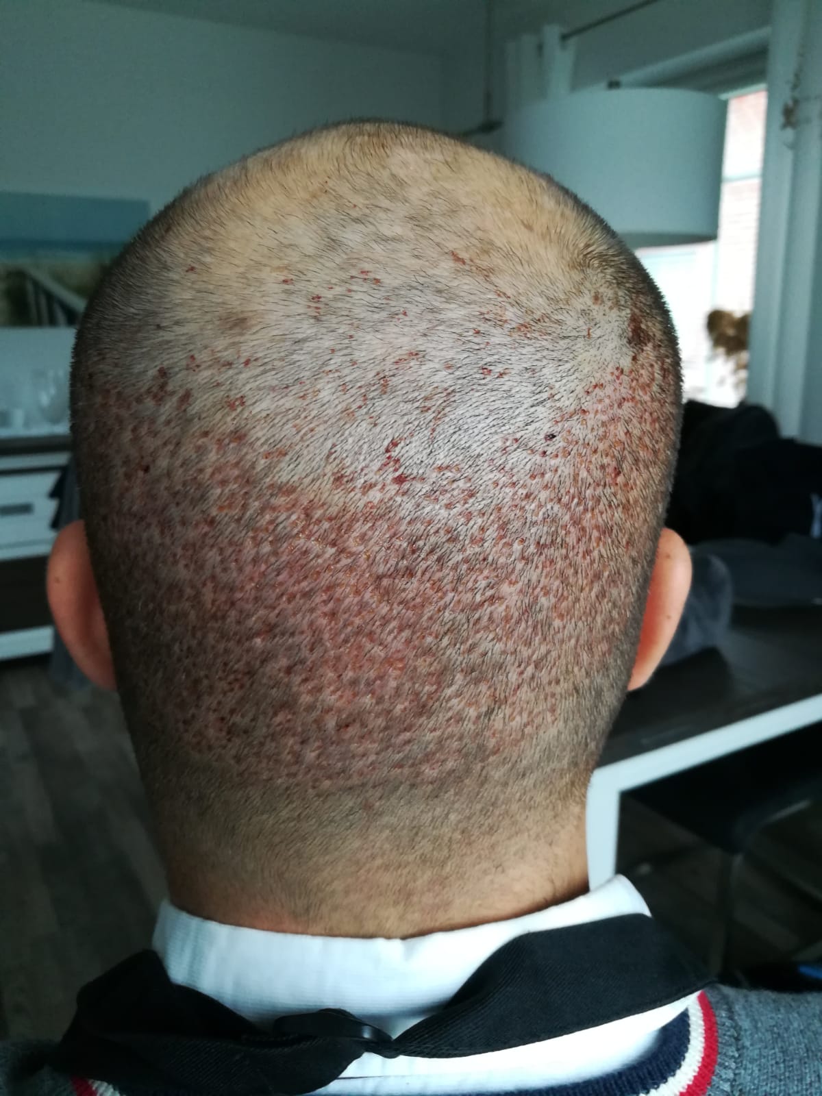 Der Donor sieht auf dem letzten Bild schon wieder besser aus. Wahrscheinlich wurde mit einem relativ großen Punch entnommen. Ich würde mich wegen des Donors nicht verrückt machen, bei 1.500 Grafts ist es unwahrscheinlich, dass der dauerhaft ausgedünnt ist.
