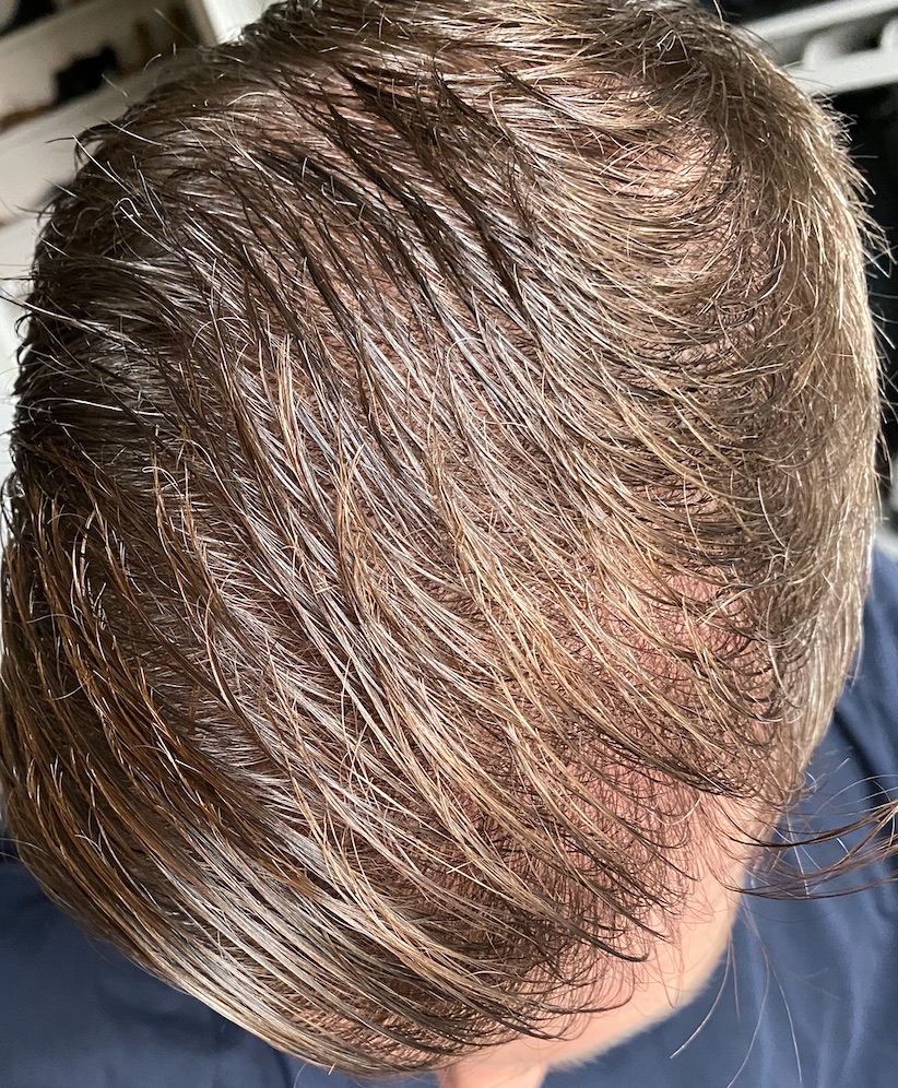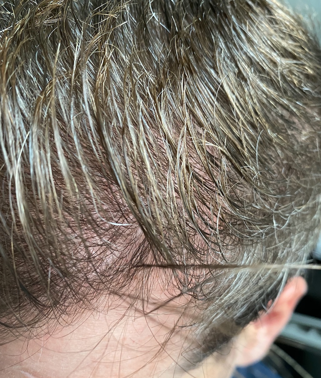 Die geringe Dichte im Stirnbereich (15-40) fällt im Alltag erstaunlicherweise anderen kaum auf, selbst wenn ich sie auf meine Eingriffe aufmerksam mache.