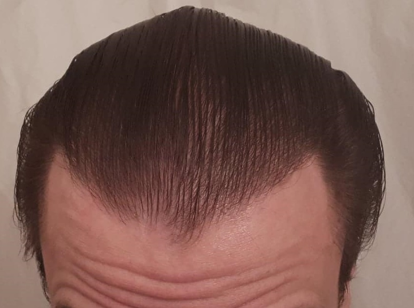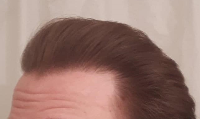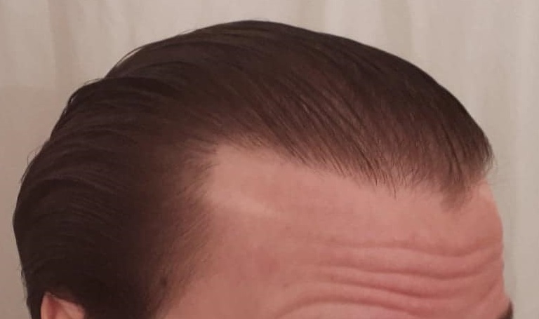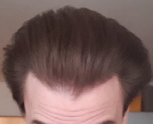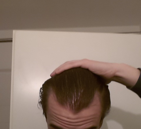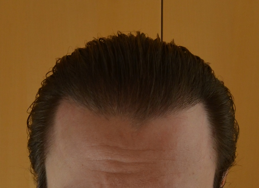 Mich stört tatsächlich beides: meine nach wie vor recht hohe Stirn und die Transparenz des transplantierten Bereichs unter Licht.