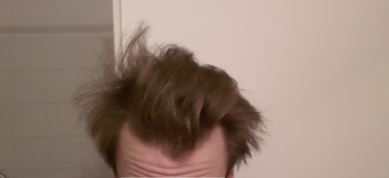 * Aktueller Haarstatus nach der Hamilton-Norwood-Skala: Hohe Stirn, hoher Haaransatz, de facto Norwood 2 seit meiner Geburt/Kindheit - Norwood 1.5 nach HT; sehr feines, hellblondes Haar, aber dicht und voll.