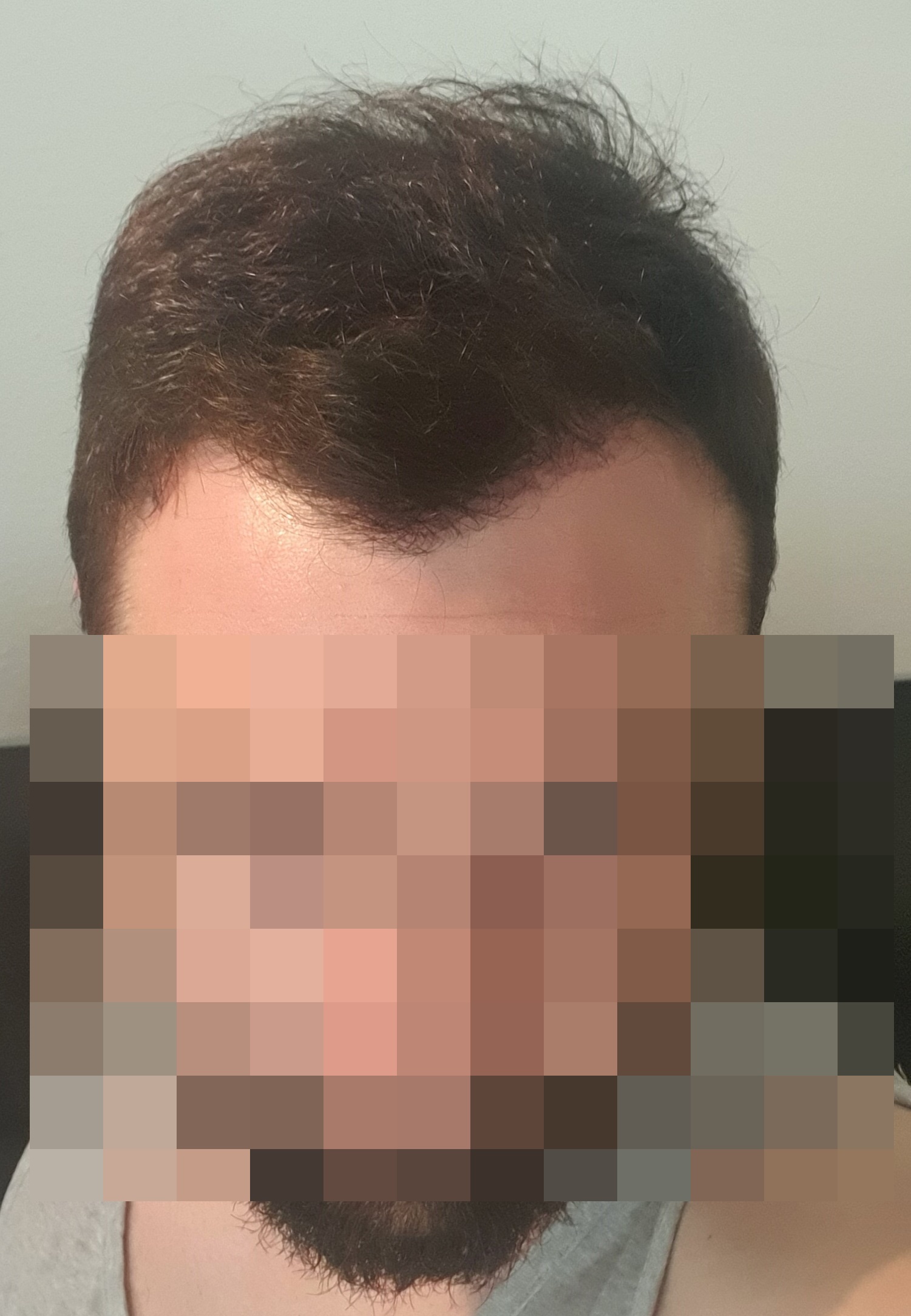 Ein neues Update von mir, es sind nun etwas über 6 Monate vergangen und es deutlich mehr Haar vorne zu sehen.