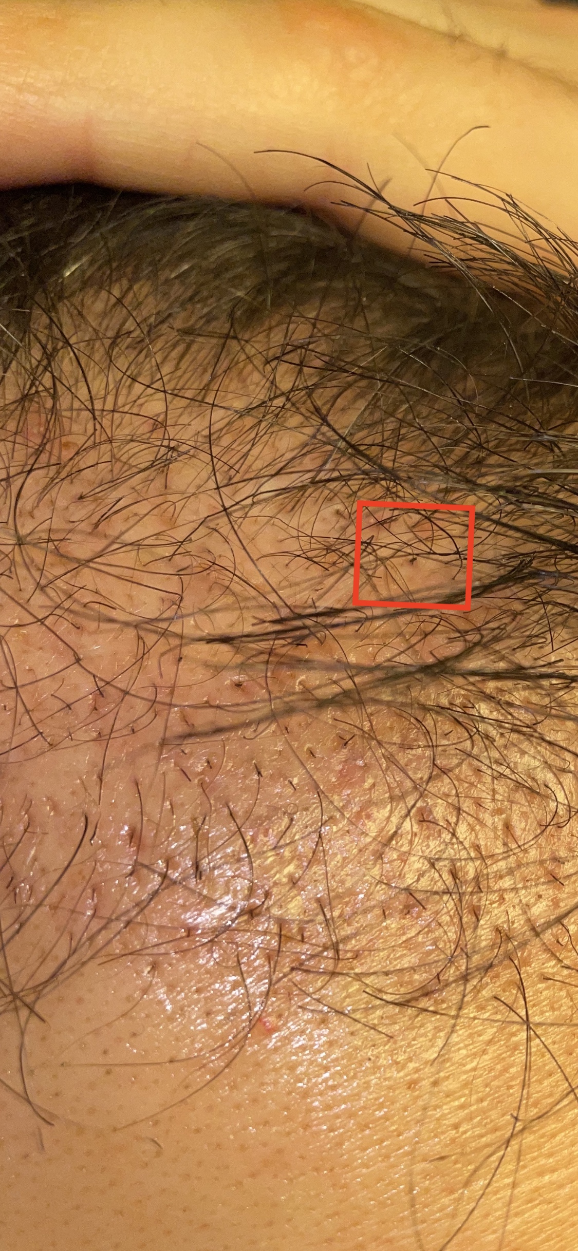 Wie beschrieben gibt es aber einzelne Grafts, die quasi feststecken und auch durch irgendeine Schicht mit mehreren Haaren "verklumpt" sind.