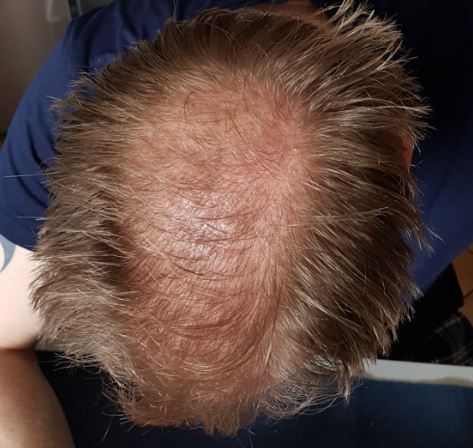 Die Haarlinie von vorne betrachtet ist definitiv gut geworden und verspricht auf den ersten Eindruck fülliges Haar. Aber es ist von jeder anderen Perspektive nicht wirklich dicht. Tonsur ist fast unverändert kahl.