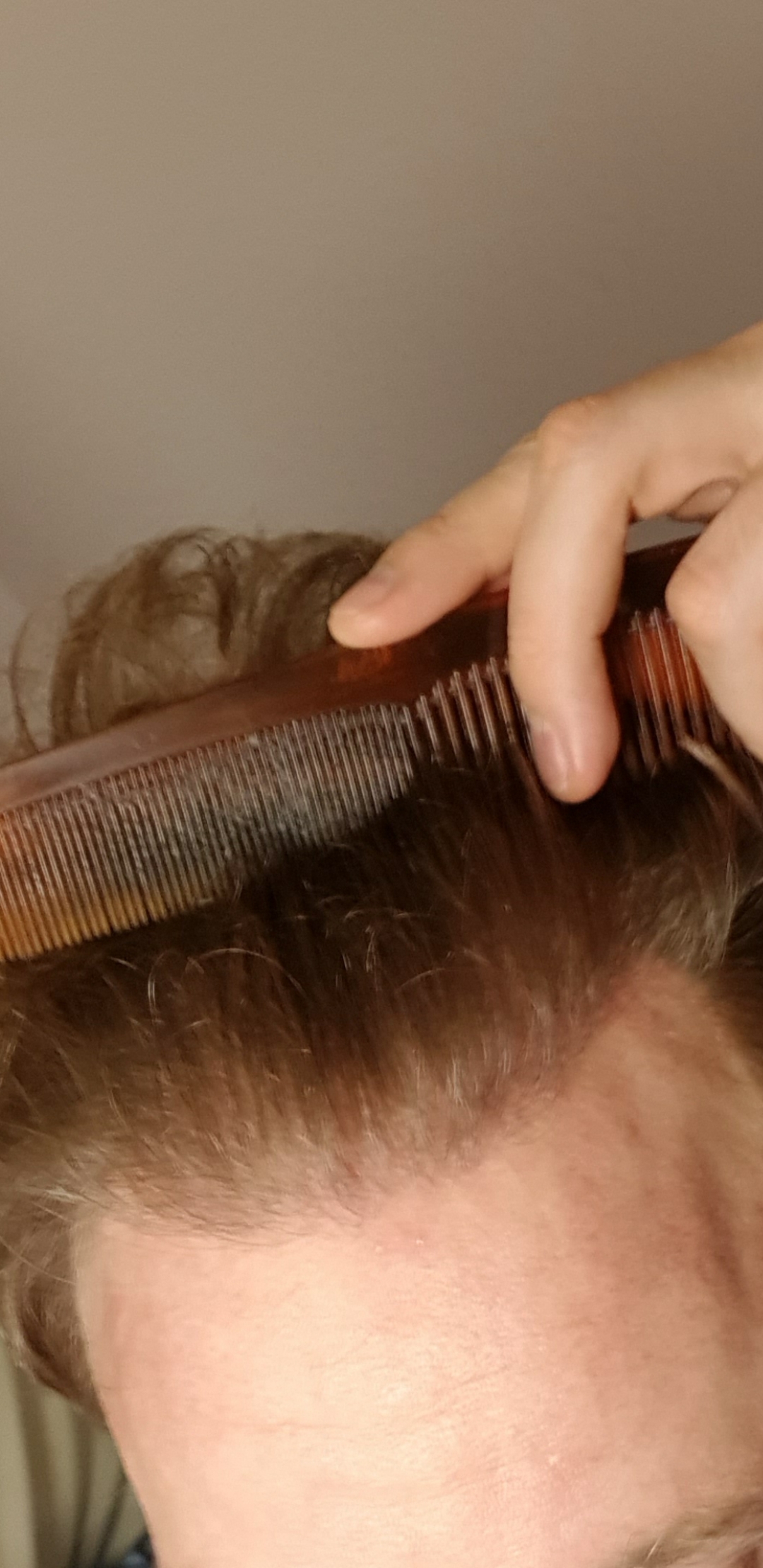 Nach der ersten Woche ging es besser und es war nur noch ein wenig unangenehm auf den Klammern zu liegen. Seit dem zehnten Tag verliere ich Haare im Empfangsbereich und auch längere Haare aus dem Donorbereich verabschieden sich. Ich habe das Gefühl, dass um die Narbe herum aktuell Haare ausfallen.