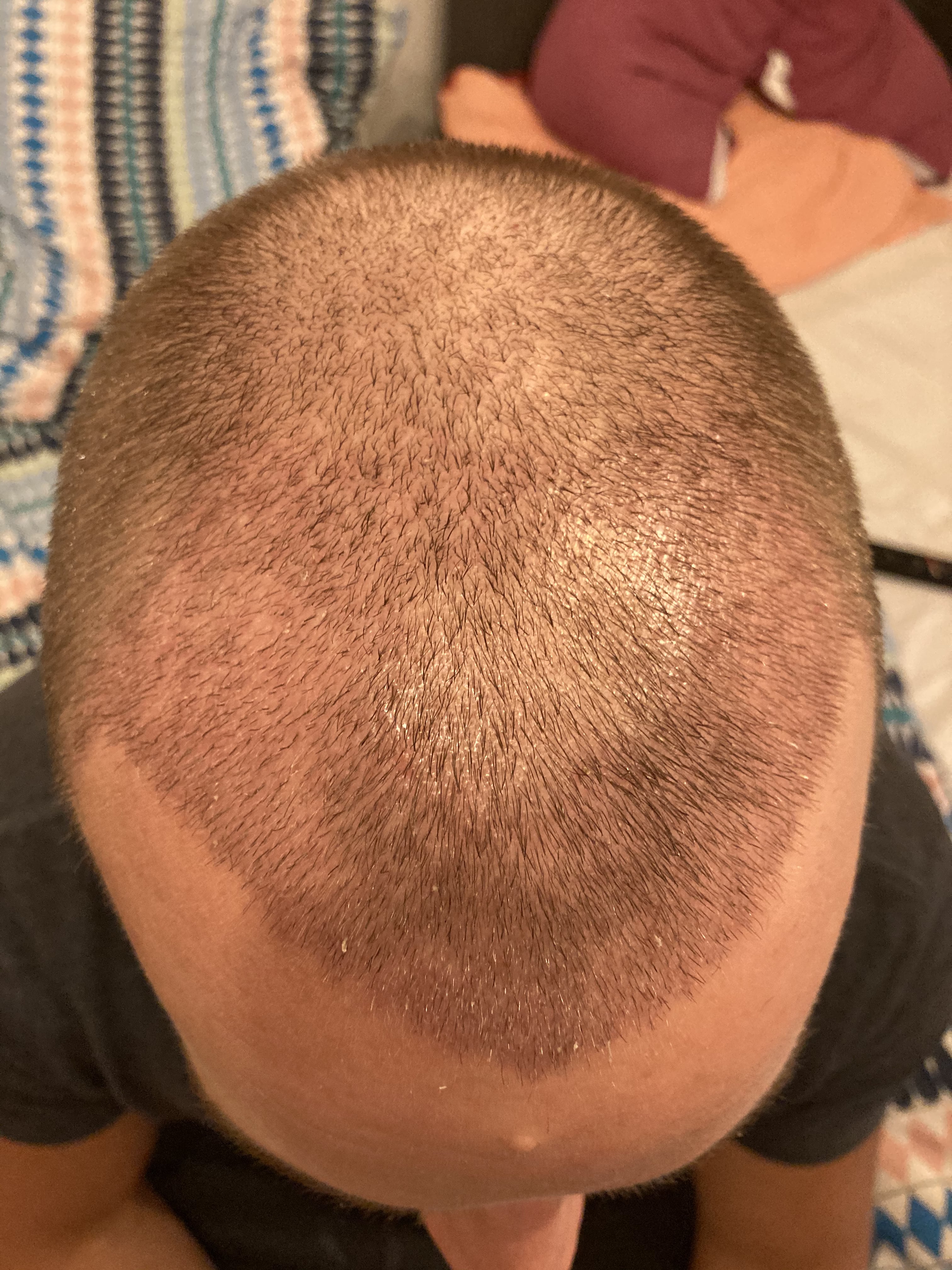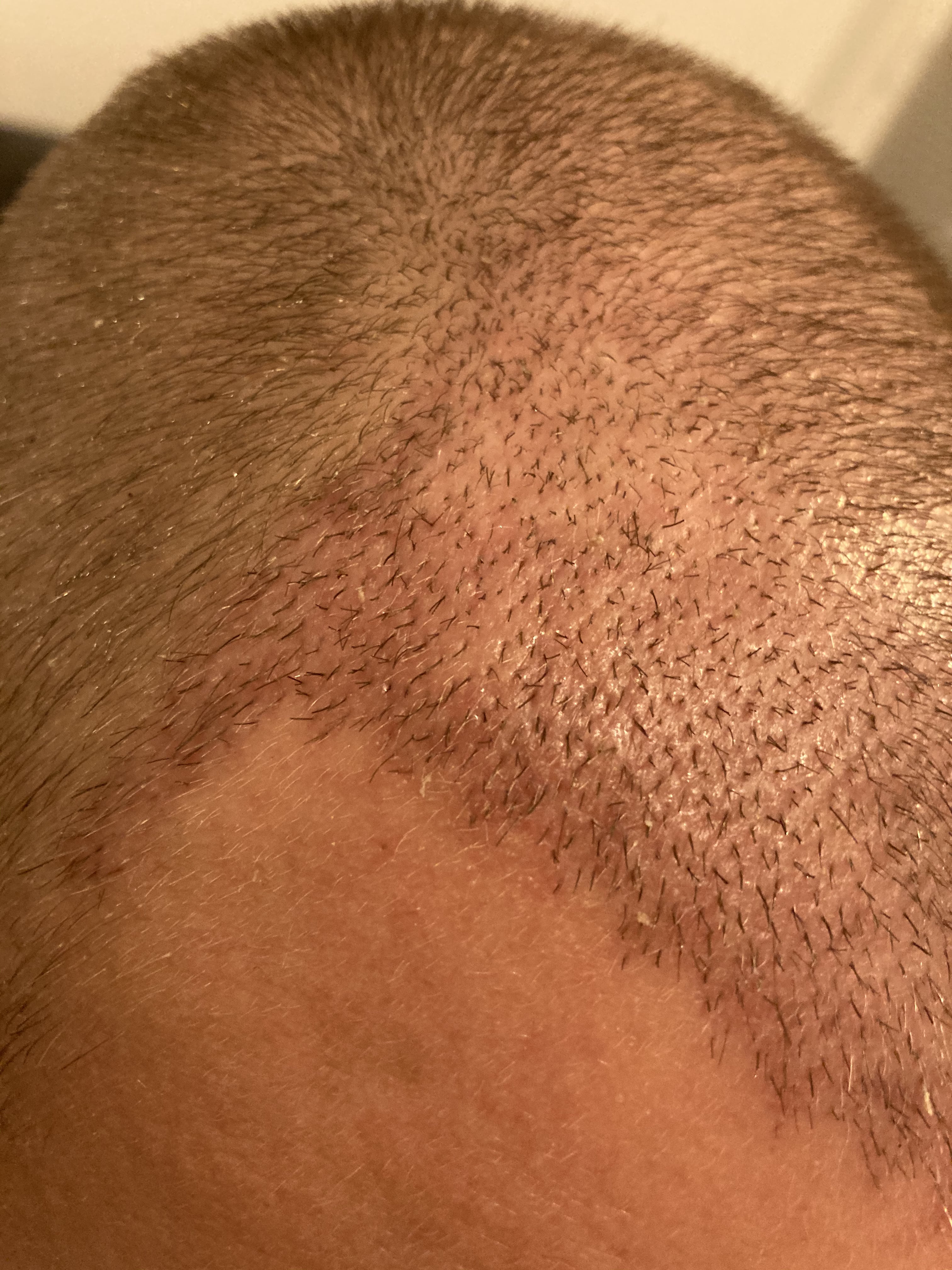 Ich erkenne nun schon an einigen Stellen transplantierte Haare und habe vereinzelt Dreiergrafts und häufiger Zweiergrafts identifiziert. Ich werde ein Foto des Empängerbereichs posten, wenn ich krustenfrei bin.