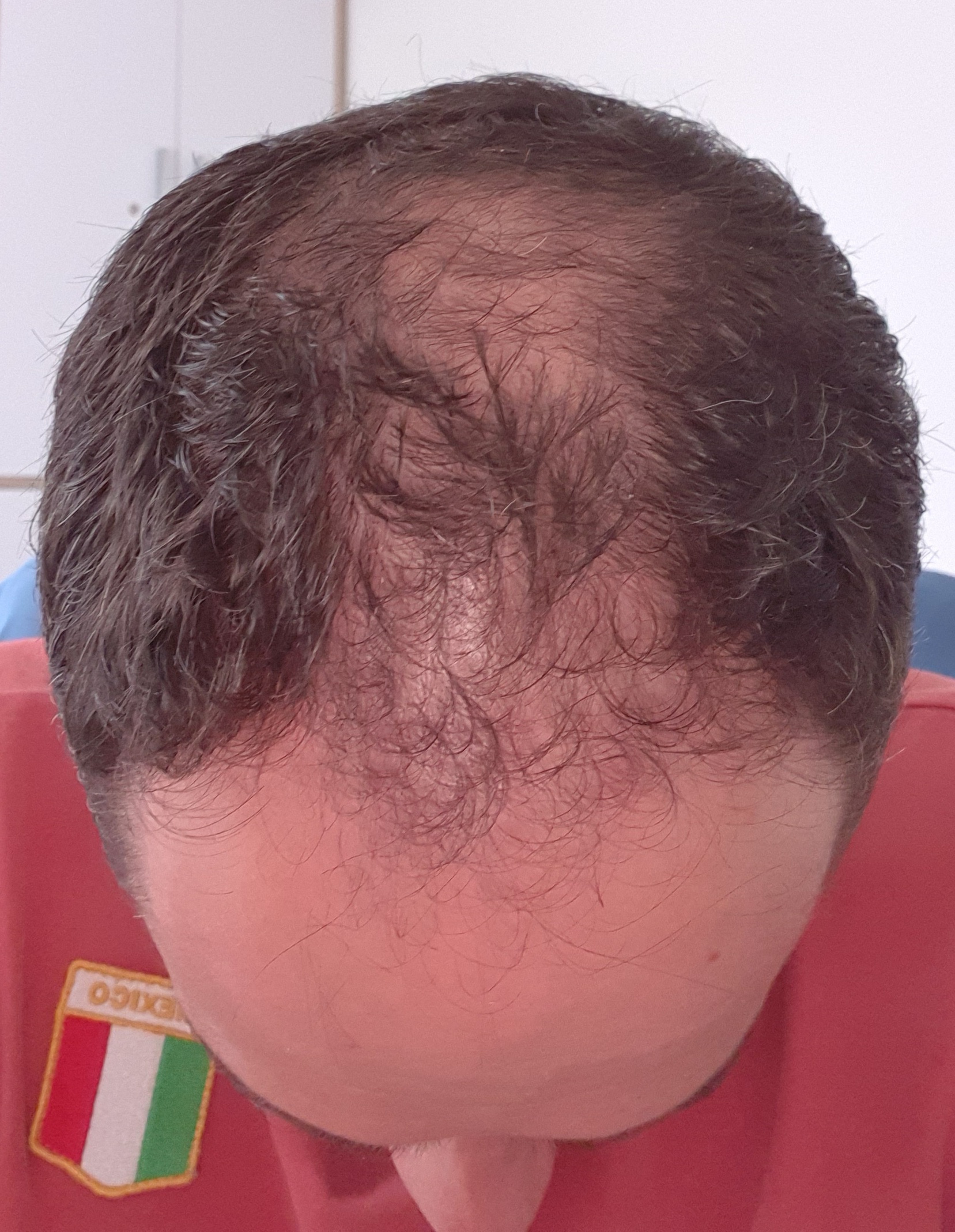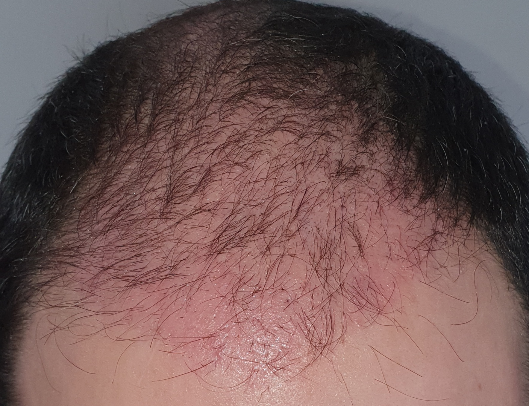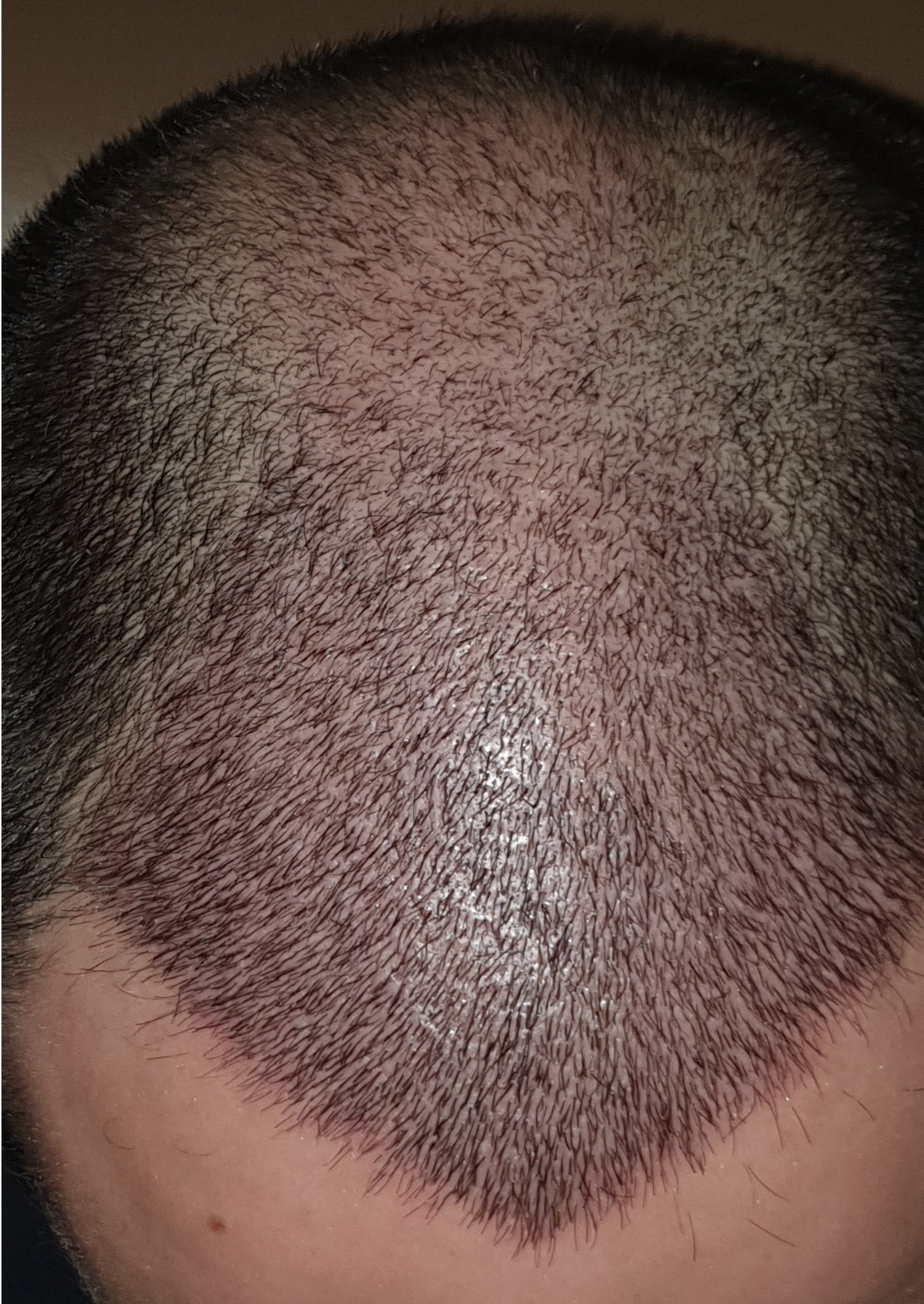 Ich glaube, dass du dir eine Haartransplantation als eine Lösung vorstellt, weil ein Oberkopf mit weniger Haaren dir unschön erscheint. Wenn das der Fall sein sollte, möchte ich dir sagen, dass es nur so aussieht, weil dein restliches Haar voll ist. Reduzierst du diesen Kontrast durch eine Kurzhaarfrisur sieht es gleich ganz anders aus.