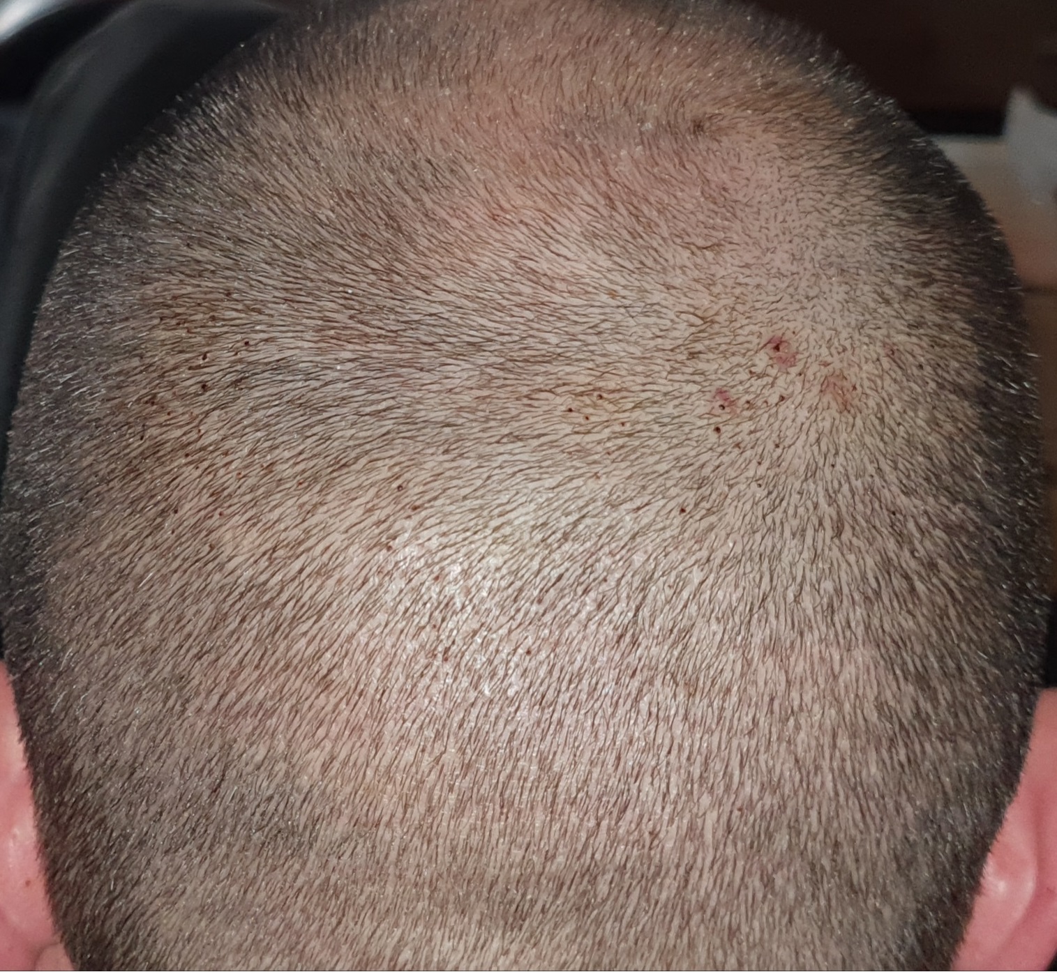 Ich tage die Haare recht kurz 9mm oben, 6mm an den Seiten, 3mm am Ansatz. Geschnitten mit einer professionellen Panasonic Maschine. Die fährt da wie durch Butter, merkt man gar nicht.