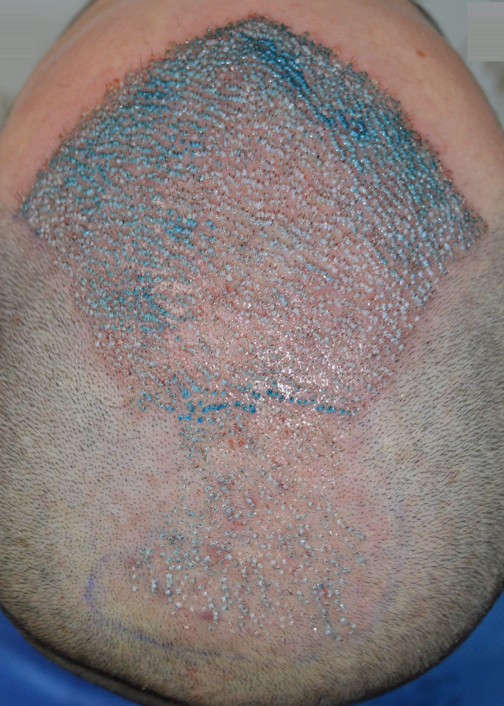 In der letzten Stunde der OP wirkte die Narkose nicht mehr richtig, hatte aber wohl die maximal mögliche Dosis bereits erhalten. So dass ich die letzten 100-200 Grafts unter Schmerzen habe machen lassen.
