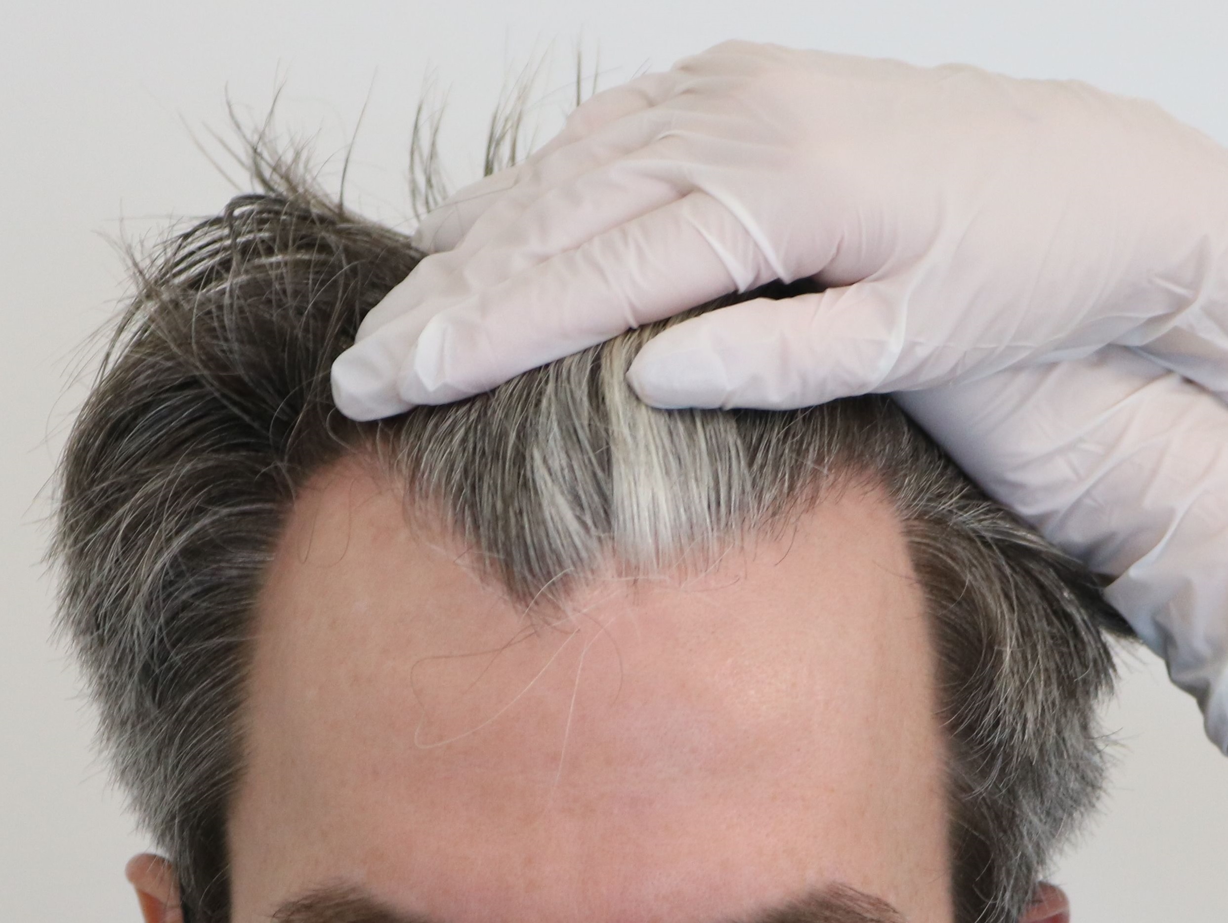 Mit etwas gutem Willen meine ich, teilweise dunkle Punkte auf der Kopfhaut zu erkennen, was die ersten sich zeigenden, richtig nachgewachsenen neue Haare sein könnten. Ich berichte weiter, wie es sich entwickelt.