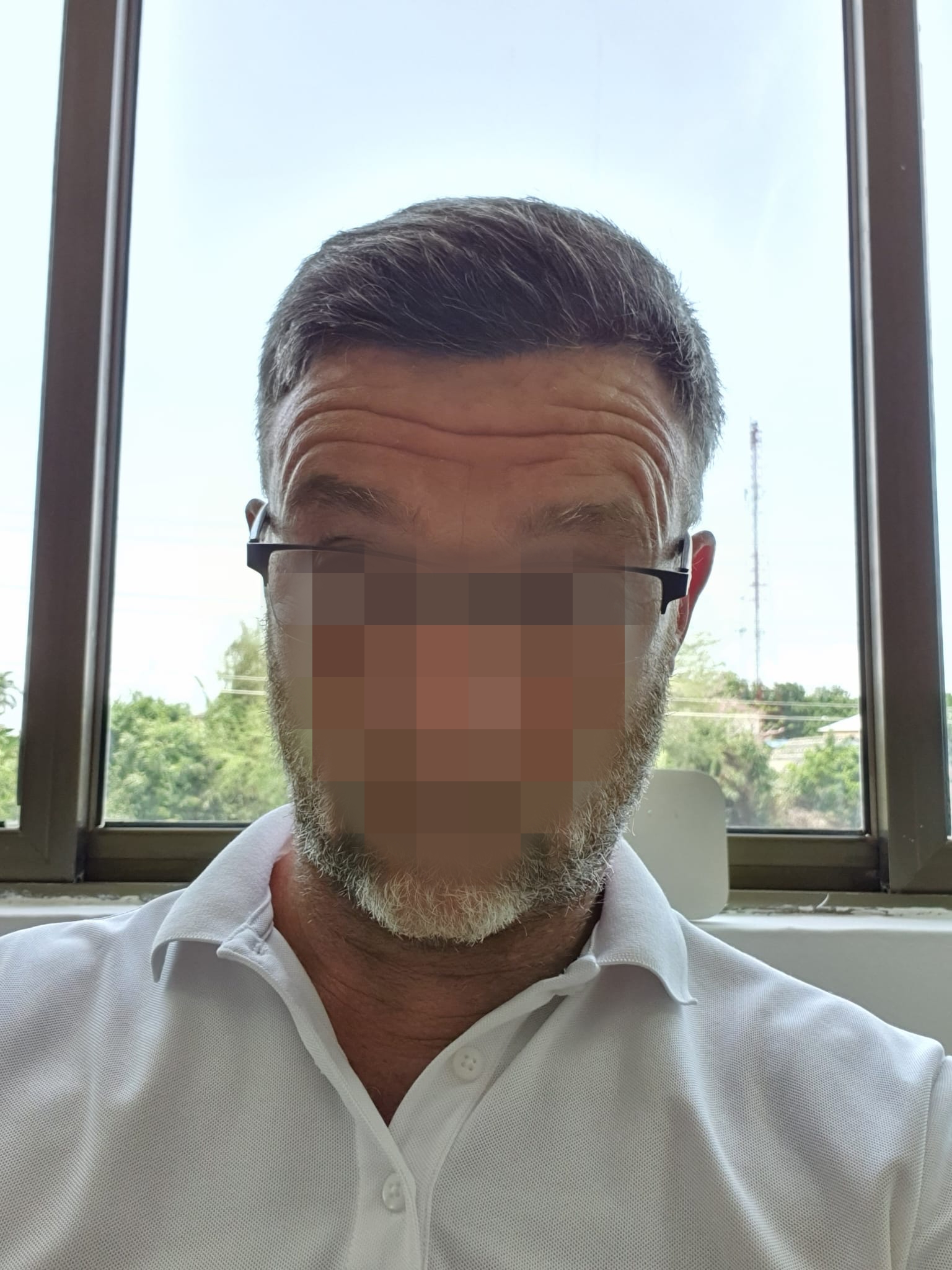 hier noch ein Bild vor der Behandlung mit etwas längeren Haaren, die Bildqualität ist leider nicht sehr gut, aber man kann die undichte Haarlinie erkennen: