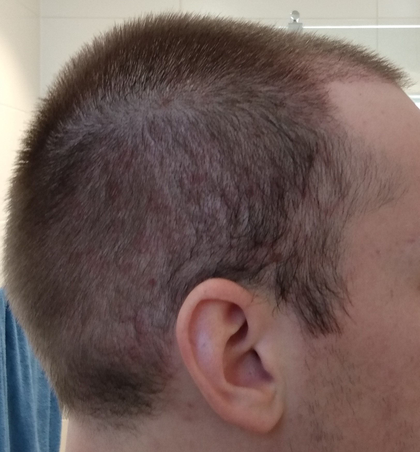 Einzig die Schuppen sind mir aufgefallen auf den Fotos, die muss ich loswerden. Entweder kommen die noch vom Sebamed oder es liegt an meinem neuen Shampoo (Kerastase, sehr teuer). Habe die aber schon längere Zeit, wobei ich da nur Sebamed verwendet habe. Vielleicht weiß da jemand was genaueres? Auffällig ist meiner Meinung nach aber das die Schuppen nur im transplantierten Bereich zu sehen sind (siehe Bild "oben").