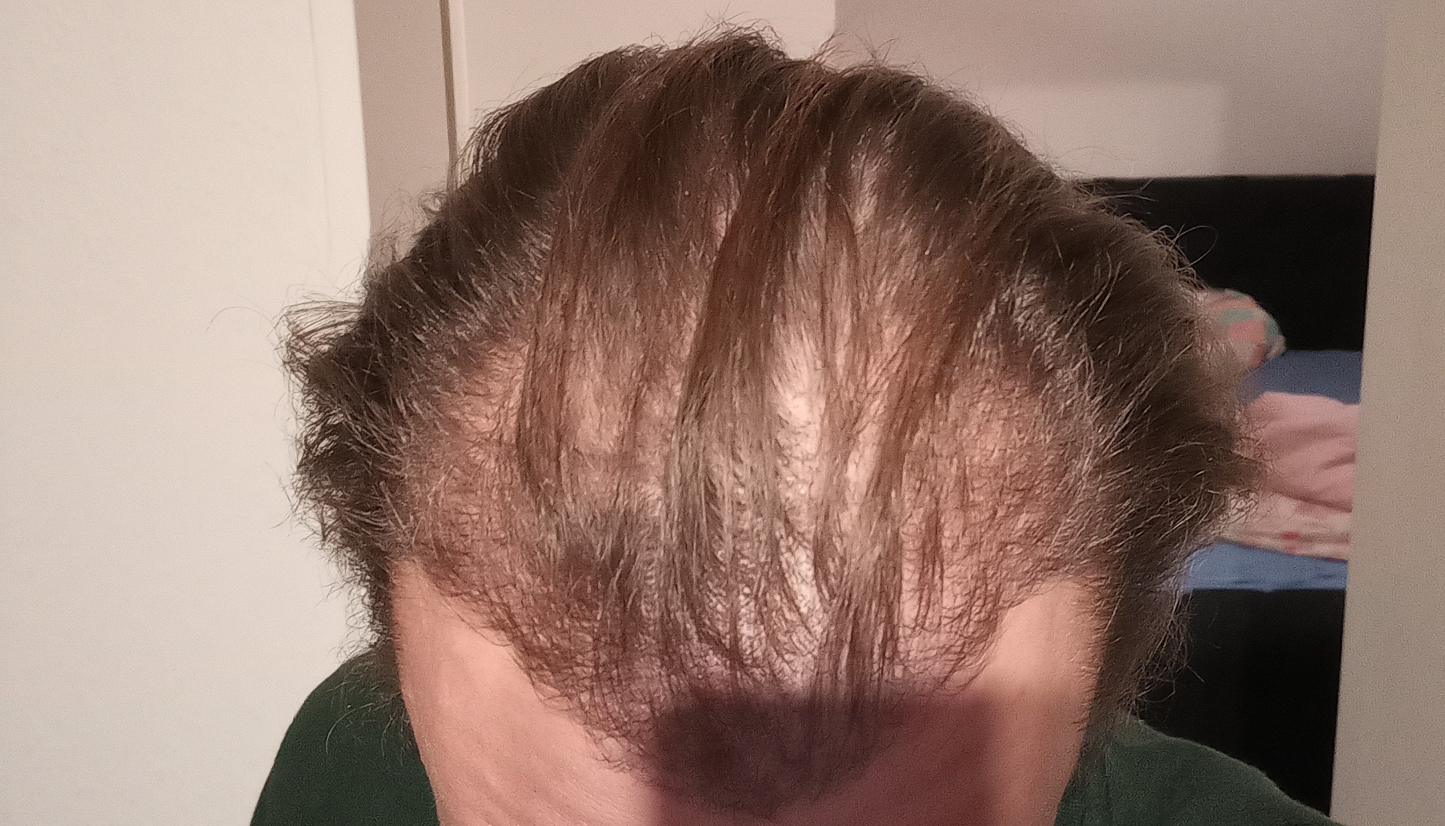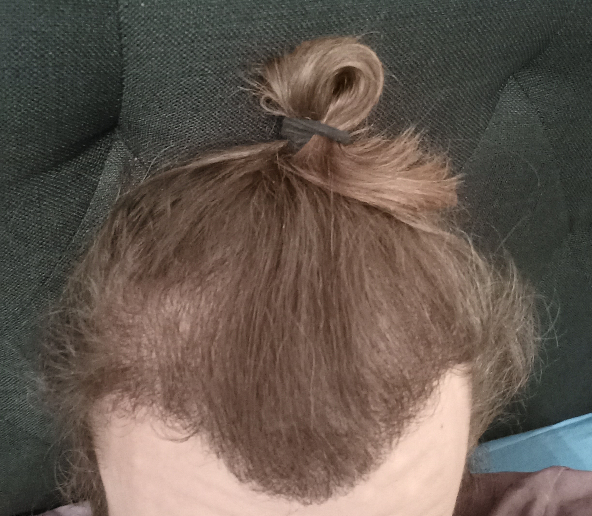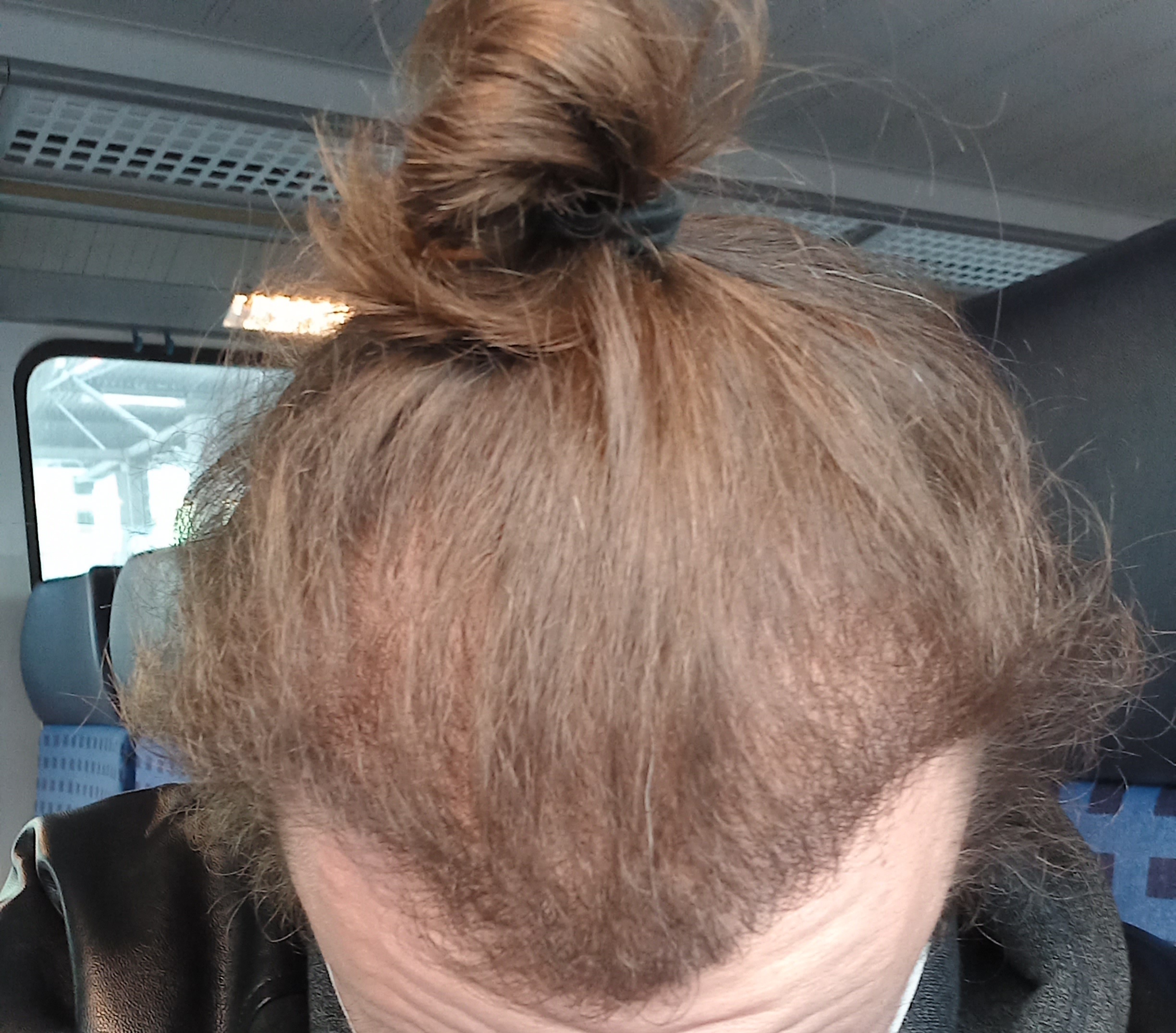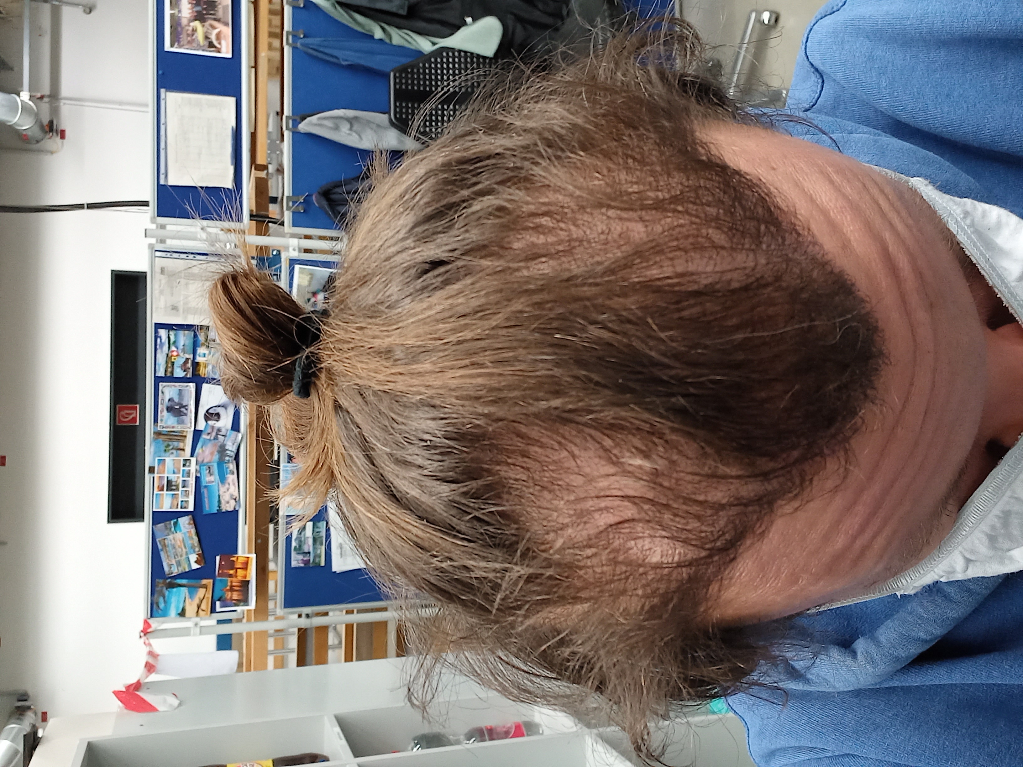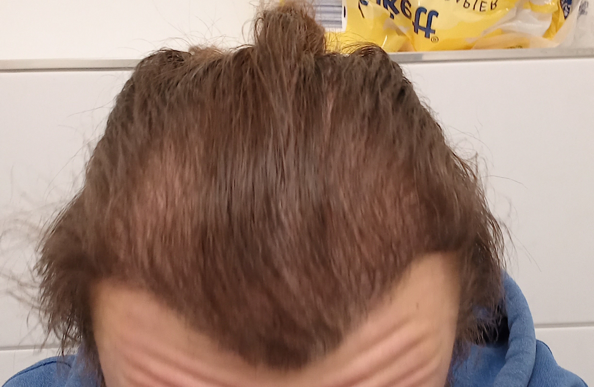 Okay, danke für den Tipp. Vielleicht ist es auch einfach nur der starke Kontrast zu meinem langen Haar, aber ich finde, vor allem die linke Seite, ist überhaupt nicht dicht. Ich weiss es nicht. Es ist auch noch Zeit bis zum Endergebnis.