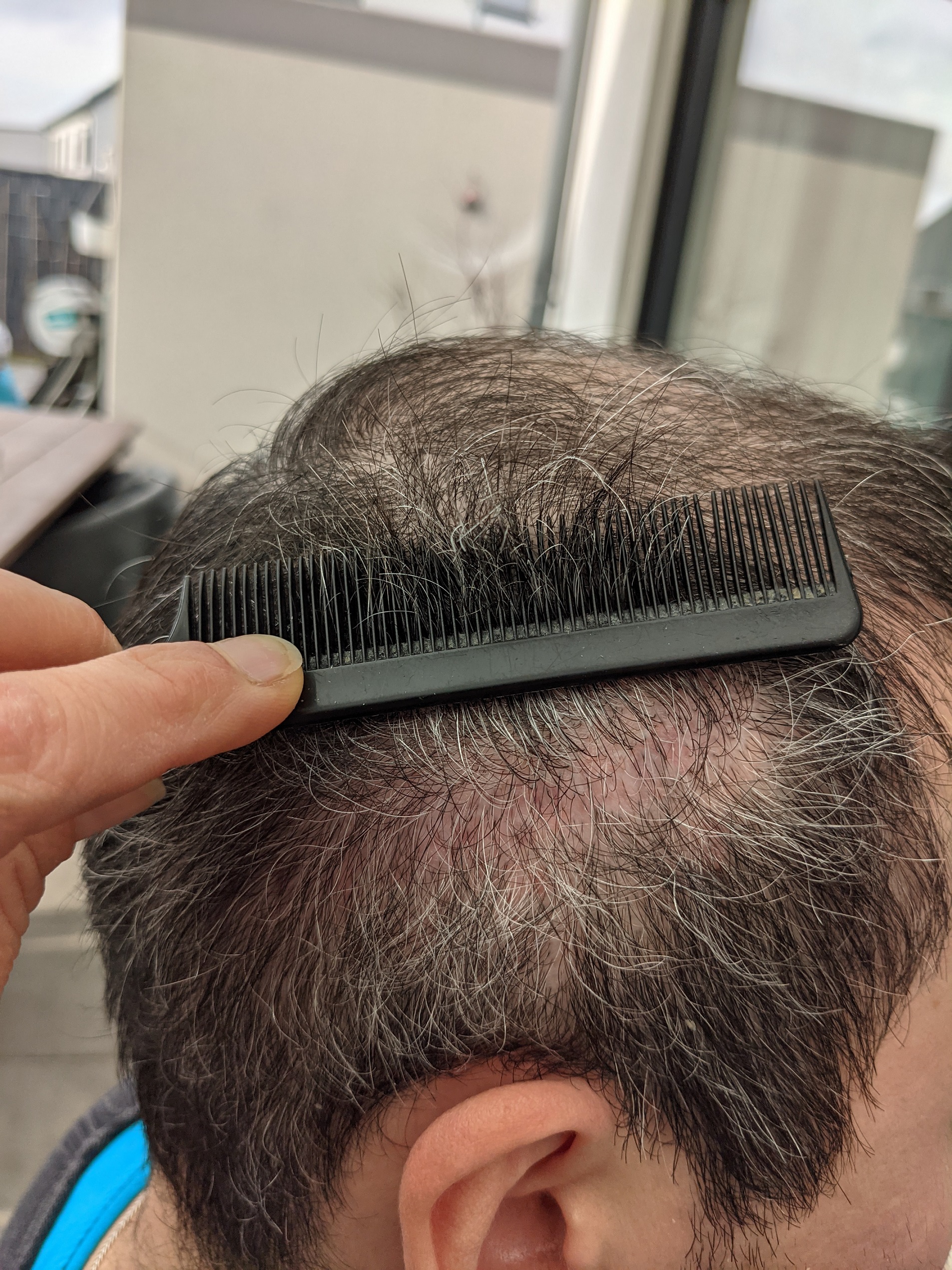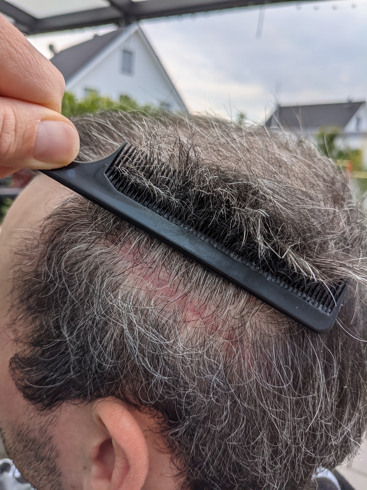 Damals während der Biopsie haben die lange nach Auffälligkeiten gesucht und einen kleinen roten Fleck gefunden und daraus eine Stanzprobe genommen. Die Diagnose war leichte Form von LPP und ich musste mehrere Monate vor der OP und 20 Tagen nach der OP Kortisol Lotion auf die Kopfhaut schmieren. Ich vermute jeder mit etwas Rötung auf der Kopfhaut hätte dieselbe Diagnose bekommen.