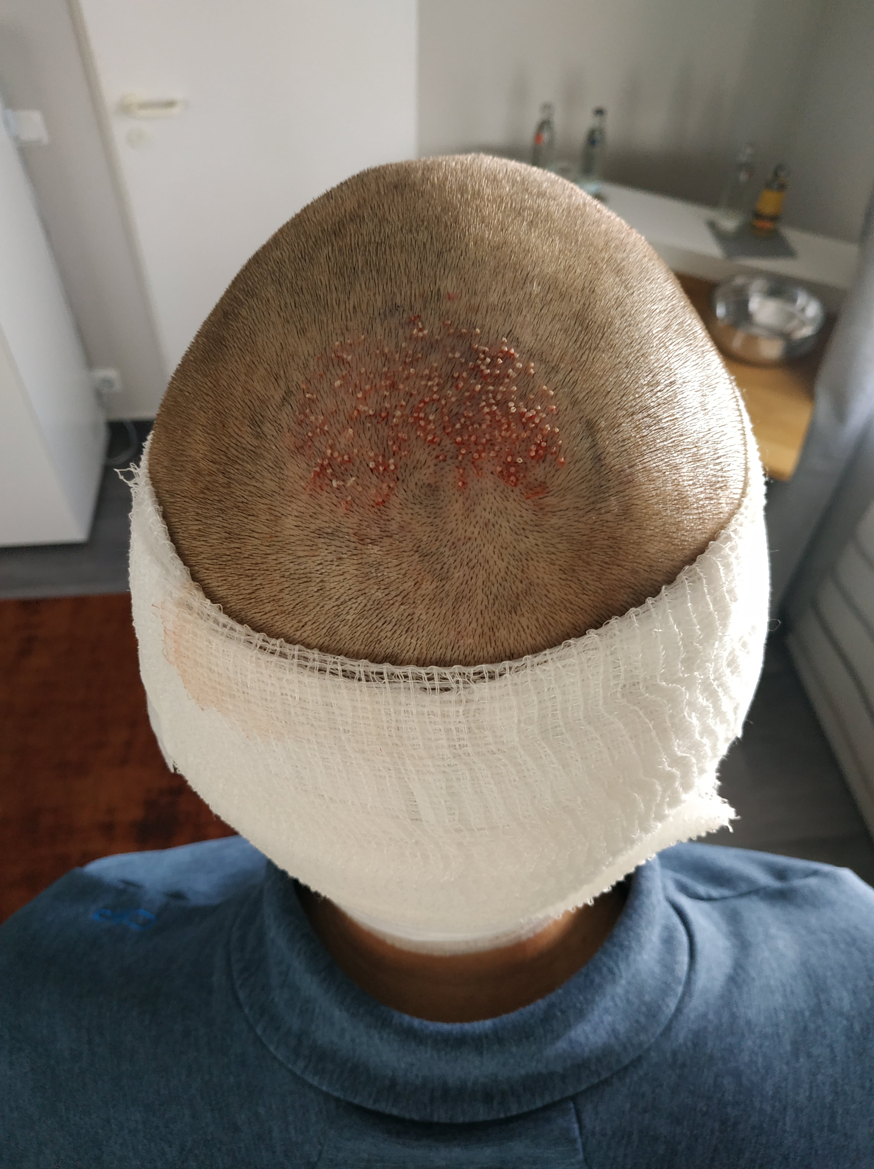 Für den hinteren Bereich, den ich kurzfristig doch mit reinnehmen wollte, wurde mir kein Geld berechnet. Die vorher bestimmten Grafts haben hierfür ausgereicht, da die Fläche am Hinterkopf nicht wirklich groß war