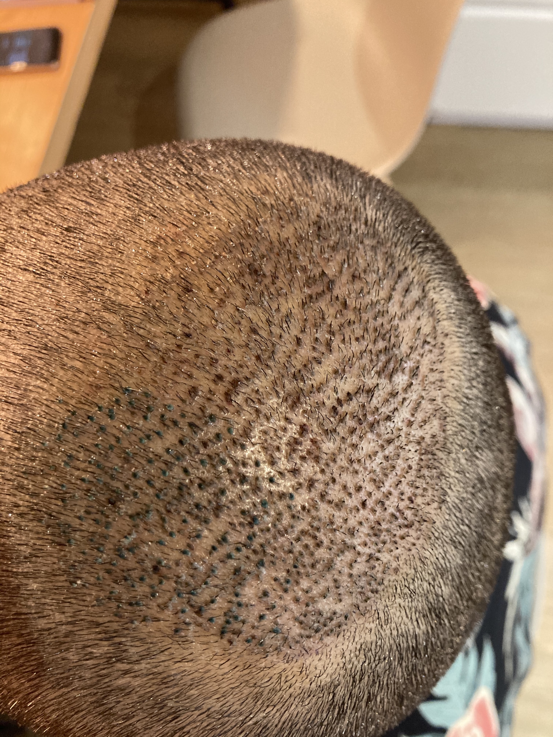 Bisher sieht alles echt top aus bei Dir. Gute Haarlinie, sehr saubere und schonende Entnahme (das kann Dr Ayoub auch echt gut) und als Bonus Dein sehr moderates ugly duckling (dazu noch mit einem guten Haut / Haarkontrast).