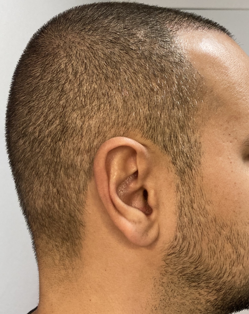 Anbei Fotos vom Donor, heute, 12 Tage Post-OP. Gelegentlich habe ich noch leichte 'stechende' Schmerzen - aber nur sehr selten und kurzzeitig. Krusten sind oben zu 99% weg, das letzte Prozent folgt heute.