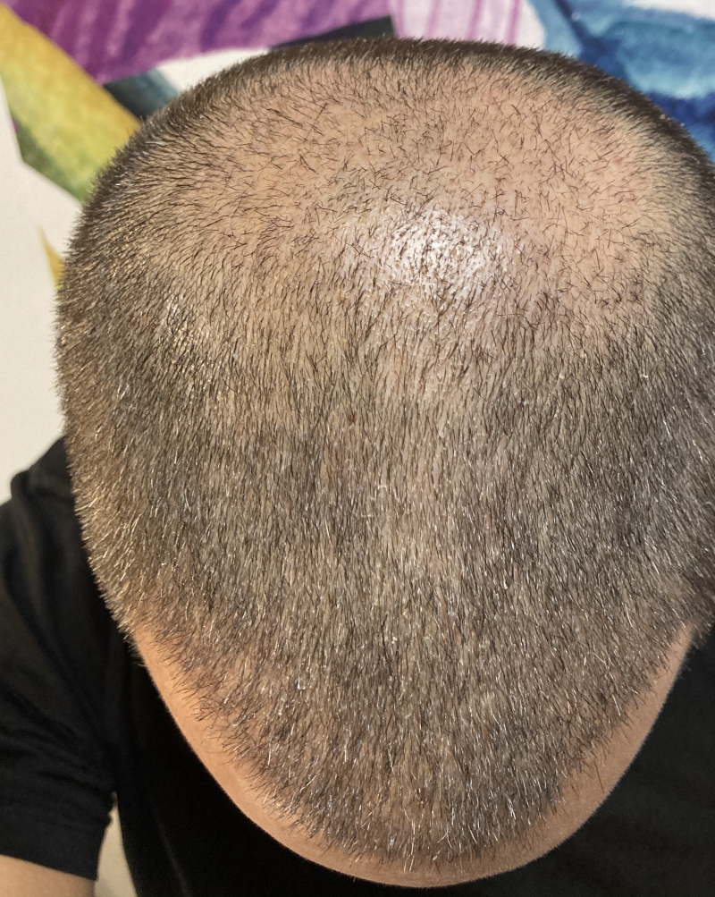 Ende 20 begann dann aber die Stirn größer zu werden GHEs entstanden sichtbar….Tonsur fing gaaanz langsam an. Minox begonnen – SUPER angeschlagen, Tonsur wieder dicht….einige Jahre später (ca. 32) hörte Minox auf zu wirken….und Standardfehler: mit Minox abgesetzt und UltraShedding war das Ergebnis. Aus Panik wieder angefangen, leichte Besserung. Lange Rede, kurzer Sinn, seit ca. 2 Jahren bilde ich mir ein, ein stabiles Bild zu haben: sichtbare GHEs und extrem lichte Tonsur (NW4 my guess).