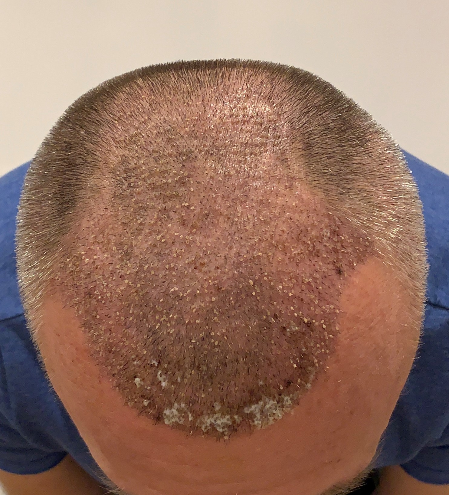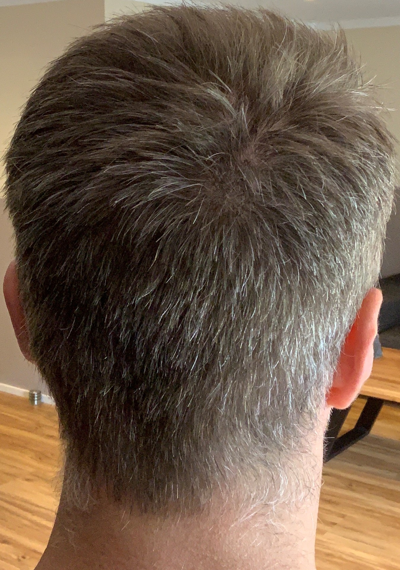 Ab Tag 9 habe ich angefangen den Schorf zu entfernen. Hier habe ich den Empfängerbereich mit der Körperlotion eingecremt, Sunde einwirken lassen und diesen Vorgang fünf Mal wiederholt. Danach mit leichten Reiben im Empfängerbereich die Haare gewaschen. Diesen Vorhang habe ich die nächsten Tage wiederholt. Am 13 Tag war der Schorf auch schon weg. Bei der Haarwäsche sind am Anfang einzelne Haare ausgefallen. Irgendwann ab 15 Tag waren es immer mehr die ausgefallen sind. Aktuell sind ca. 20% die übrig. Der Spender Bereich sieht OK aus. Diesen kann ich vielleicht besser nach dem nächsten Haarschnitt bewerten. Der Empfängerbereich ist noch leicht gerötet.