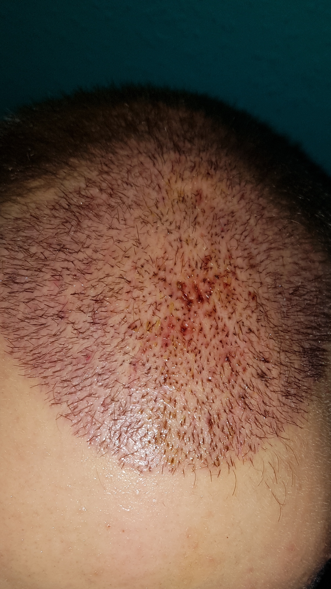 Zudem ein Bild von der Haarlinie, wo ich nun festgestellt habe,dass hier 2-3 Multigrafts in der Haarlinie sind. Generell heißt es ja,das wäre nicht gut, da es das Erscheinungsbild unnatürlich aussehen lässt. Hierbei denke ich ist es einer Bewertung bei mir noch zu früh.