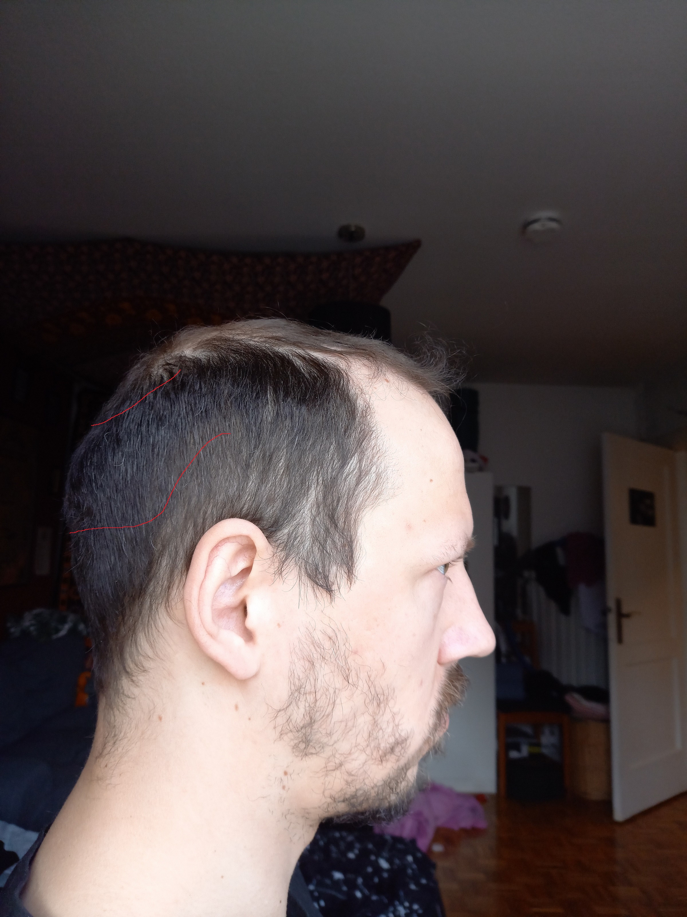 * Ausfallverlauf (schnell/langsam?): Ich würde sagen recht schnell. Hat vor 10 Jahren langsam angefangen, ich bin direkt mit Minox rein für n gutes Jahr, nach absetzen hatte ich dann ein massives Shedding vor ca. 5 Jahren und seitdem ist doch einiges runtergekommen. Ich würde also sagen so ziemlich das meiste ist in den letzten 7-8 Jahren runtergekommen.