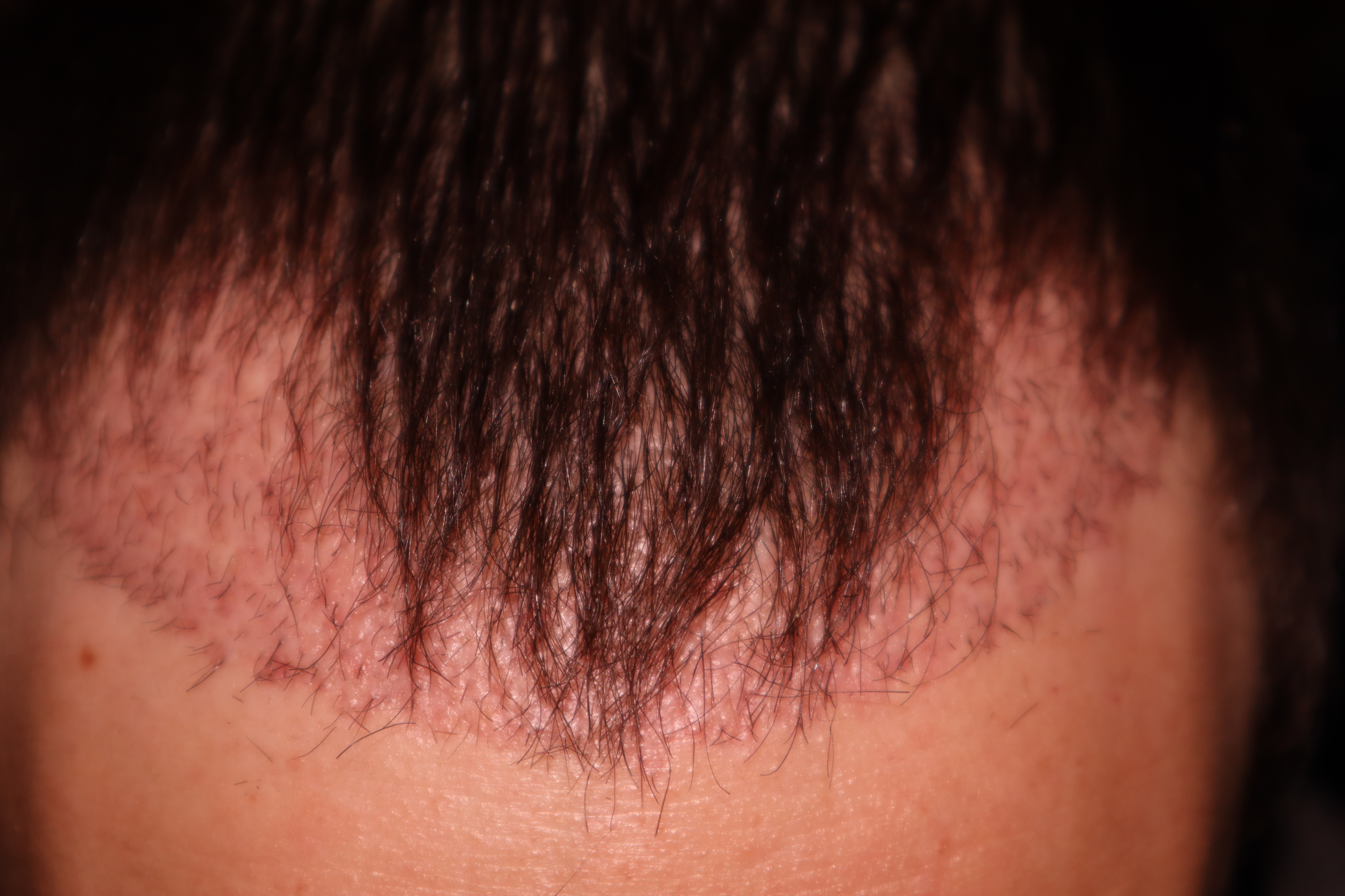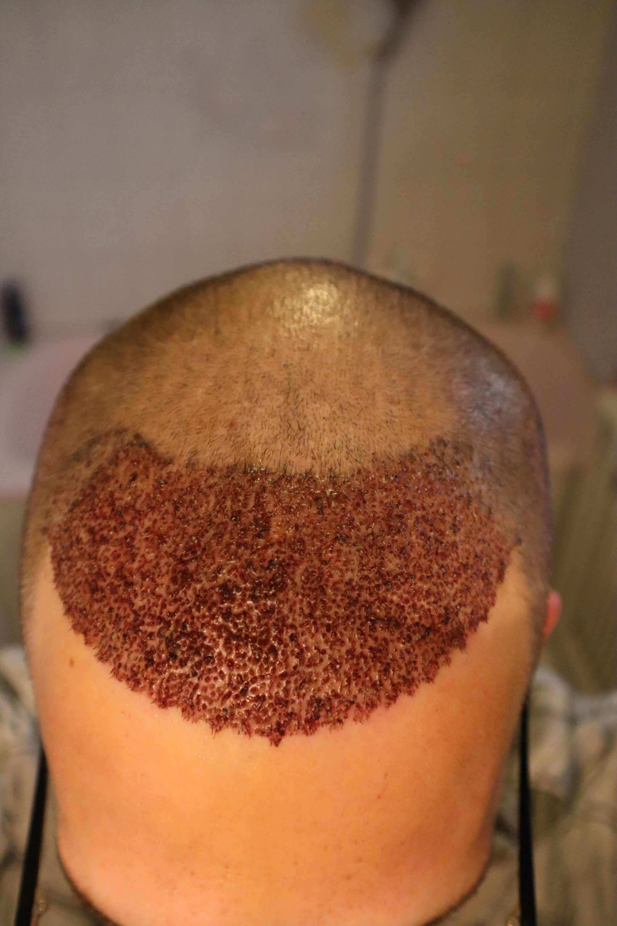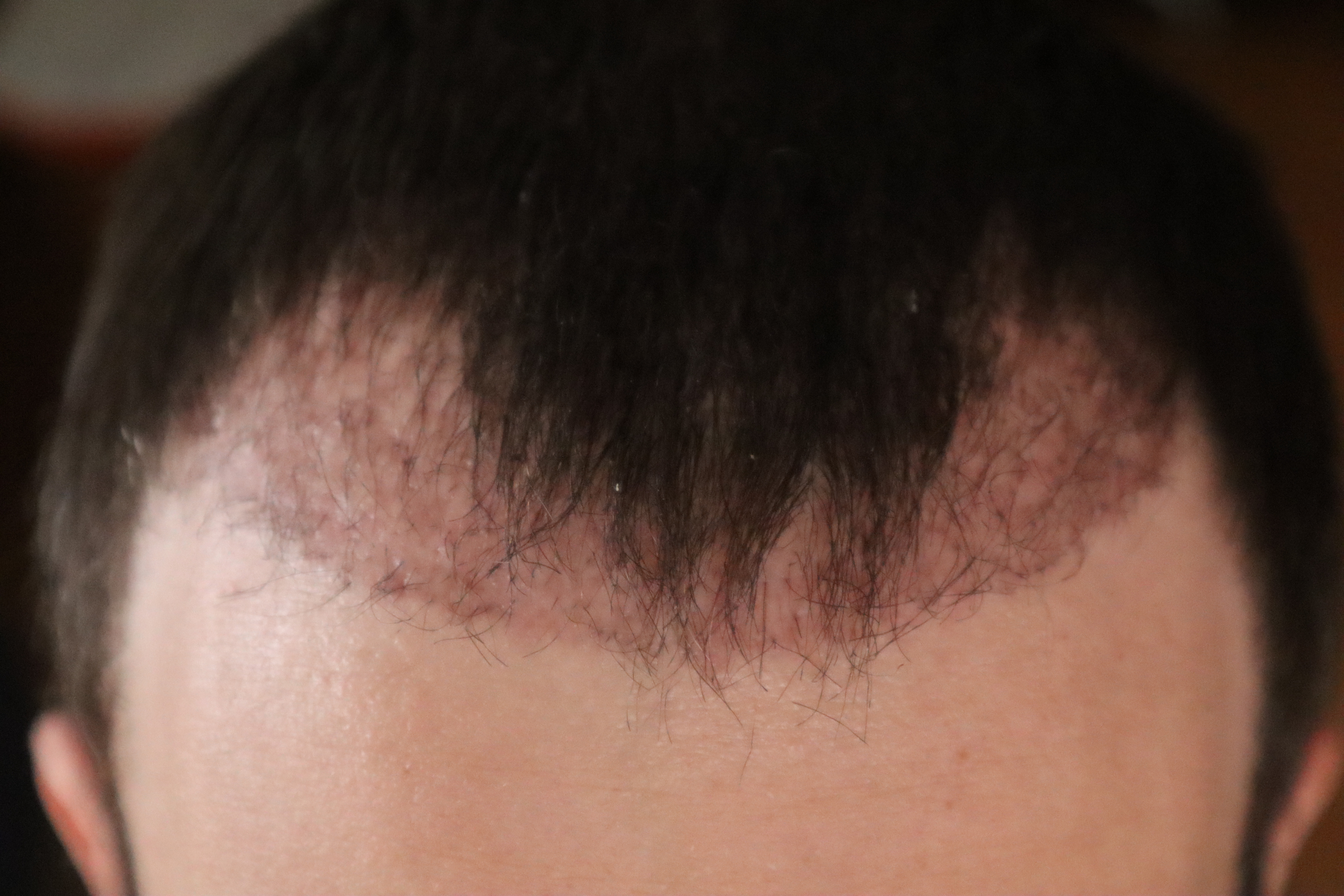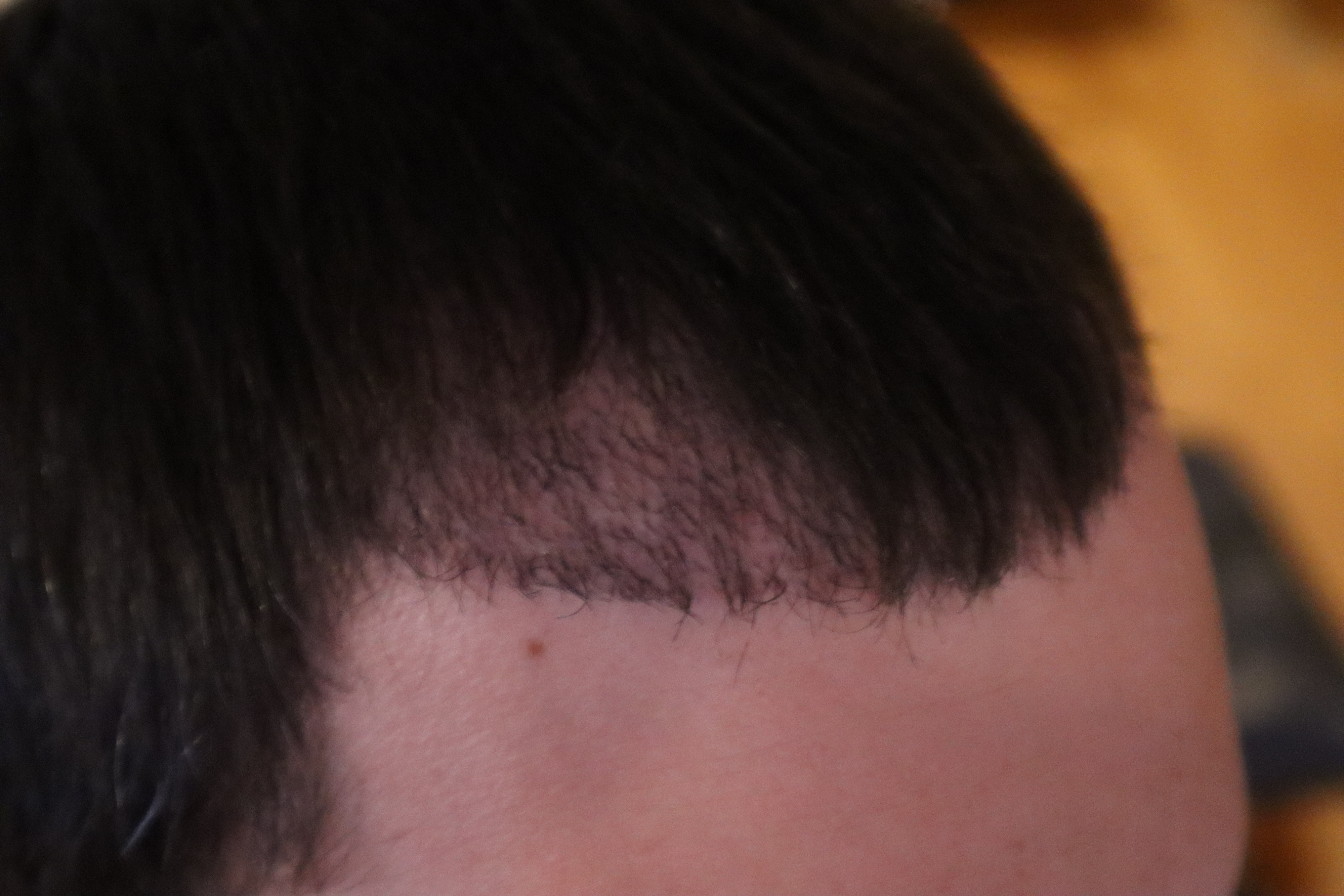 Anbei Bilder vom Einzeichnen der Haarlinie, ein Bild direkt nach der HT, und Bilder nun nach 5 Tagen.