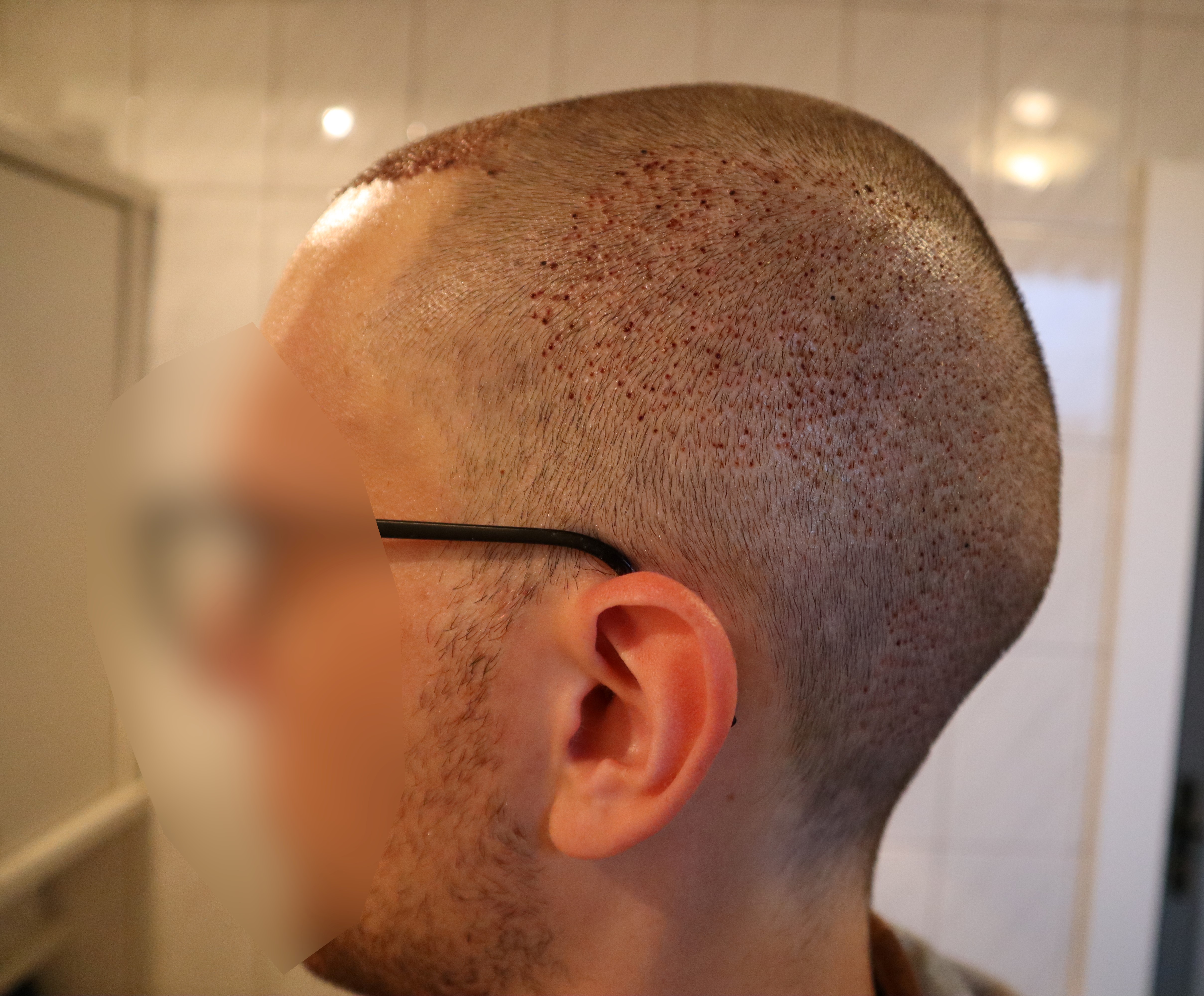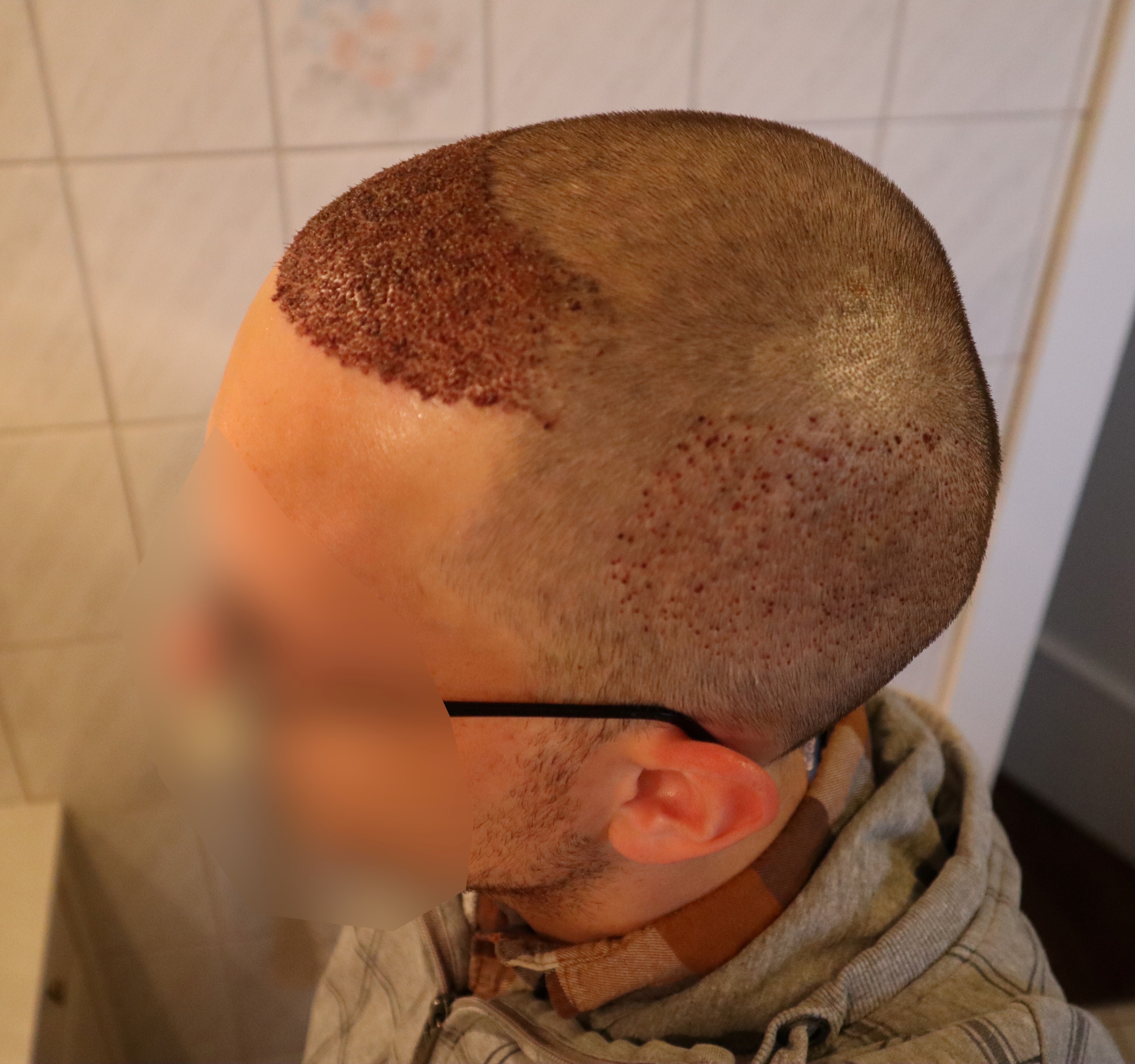 Noch ein Hinweis: Die ingesamt vier Tage waren echt äußerst anstrengend, ich dachte nicht dass es so heftig werden würde. Das Problem waren nicht Schmerzen; bei der OP wurde man ja eh betäubt und hatte somit keine oder nur kaum Schmerzen, und direkt danach hatte ich auch nur für wenige Stunden Kopfschmerzen. Das eigentliche Problem war dass ich echt sehr erschöpft war, also die HT selber und der Tag danach haben sehr an mir gezehrt. Bevor ich mich zur HT entschlossen habe hatte ich auf Youtube Videos gesehen, wo Leute angeblich direkt nachher in die Stadt gehen zum Einkaufen oder Sightseeing, meiner Meinung nach ist das kompletter Blödsinn. Man sieht ja auf dem einen Bild wie mein Kopf dann ausgesehen hat, und ich war so müde ich hätte gar nichts mehr machen können.